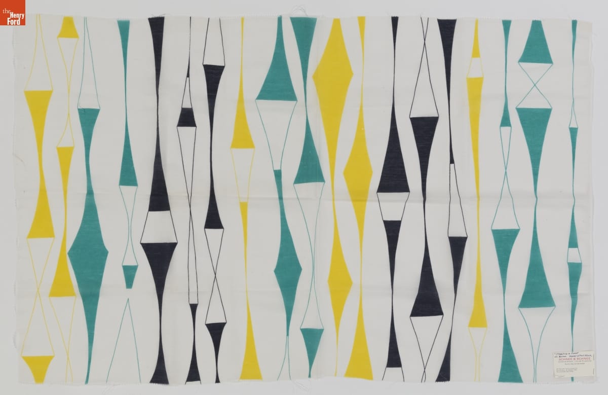 Trained as an interior architect, Ruth Adler Schnee began her pioneering foray into textile design with an entry into the Chicago Tribune's "Better Rooms for Better Living" interior design competition. Unable to locate suitable fabrics, she designed her own and this ad hoc textile she designed drew attention. She promptly taught herself to screen print and began to sell her own designs.