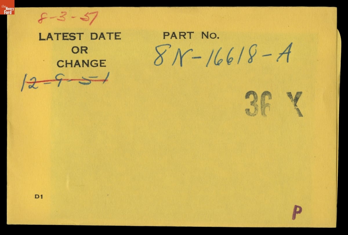The Ford Motor Company created over a million parts drawings from 1903 to 1957. Many of these drawings specify engineering requirements for the components of Ford-made vehicles--including automobiles, trucks, tractors, military vehicles and Tri-motor airplanes. Others document assembly components, stages of casting and forging, or experimental designs. Beginning in the 1940s, Ford transferred the drawings to microfilm.