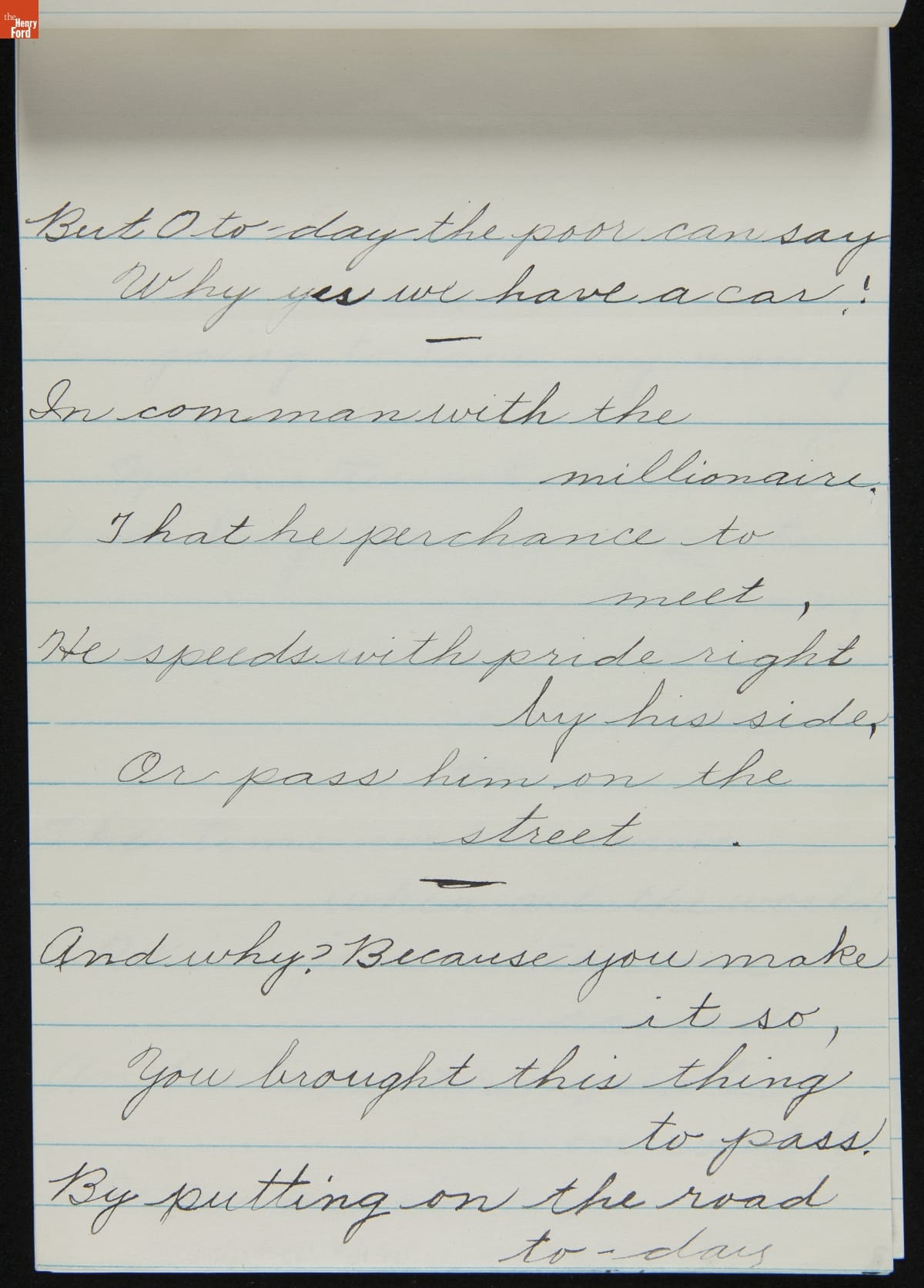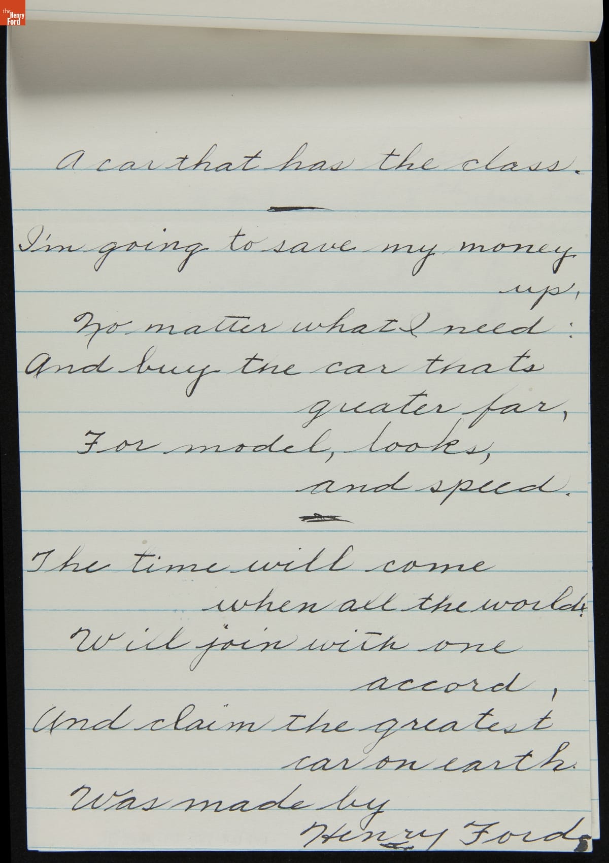 Poem, "The New Ford Car," Sent to Henry Ford by Ethel Cooper, December 12, 1927