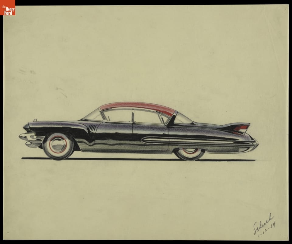 Cadillac Design Drawing by Robert J. Scheelk, January 1954