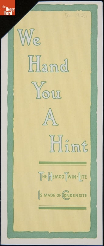 We Hand You a Hint: The Hemco Twin-Lite is Made of Condensite, circa 1915