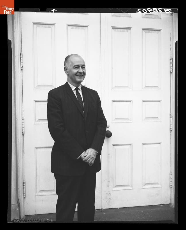 Donald A. Shelley, Executive Director, outside Henry Ford Museum, December 31, 1964