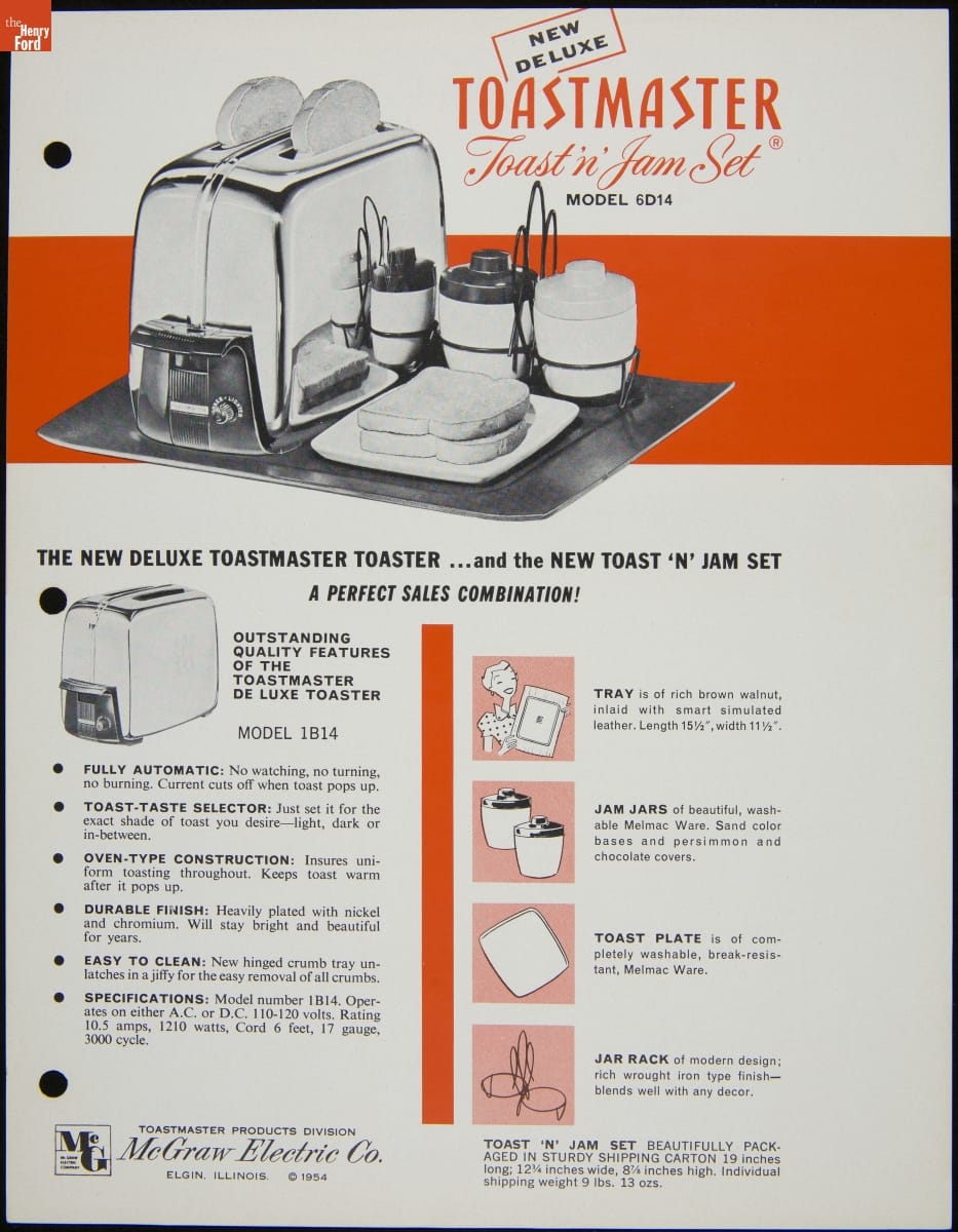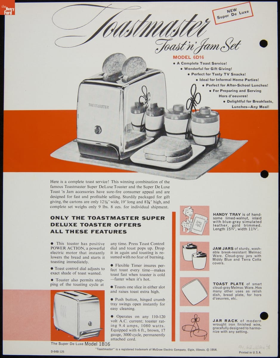 Flier Advertising "New DeLuxe Toastmaster Toast & Jam Set" 1953