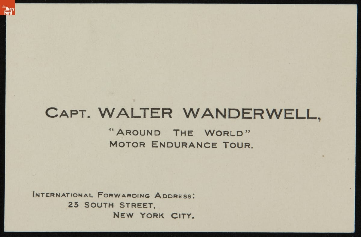 In 1919, Captain Walter Wanderwell began an automobile globe-trekking expedition to promote world peace and an international police force. He also organized other teams of like-minded adventurers to drive through as many countries as possible and promote the cause. They sold pamphlets, hosted lectures, and created and screened films of their travels to help cover expenses. Wanderwell even wrote Henry Ford asking for his support.