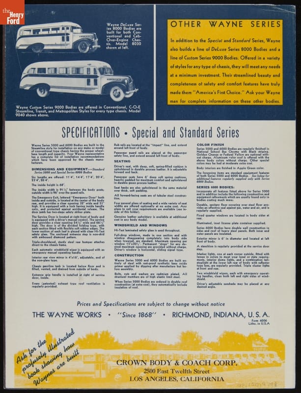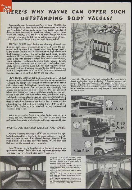 Wayne Works of Richmond, Indiana, had been building wood-bodied buses -- both for horse-drawn and motorized platforms -- for years when it converted to steel in the late 1920s. Steel bodies were safer and more comfortable for students, and they held up better under rigorous daily use. Faced with a shrinking school bus market in the 1980s, Wayne declared bankruptcy in 1992.