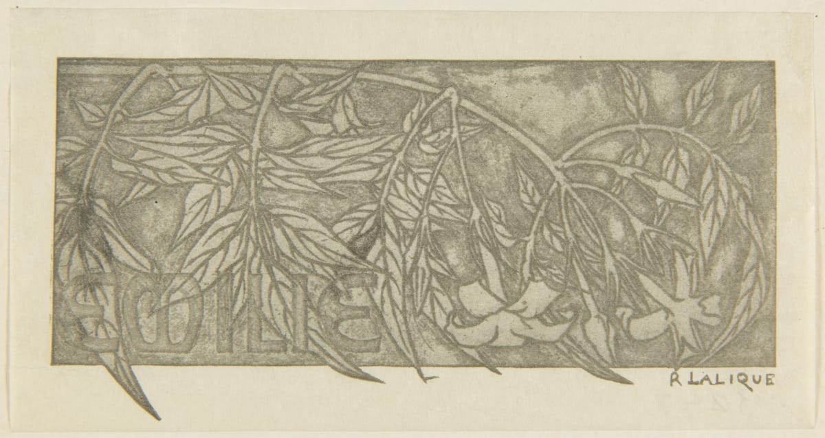 Bookplate Designed by Rene Lalique for Emilie Grigsby, 1890-1905