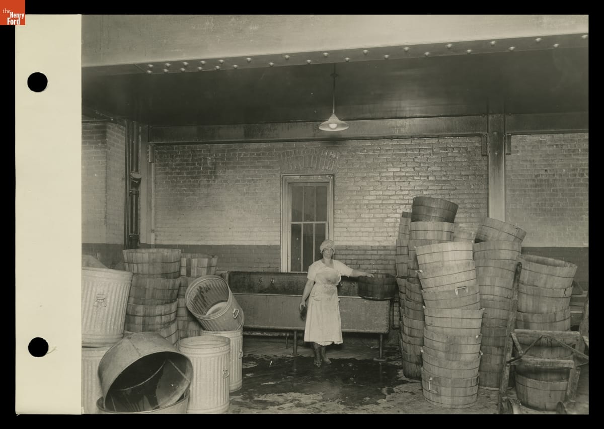 Woman Washing Buckets at the New England Pie Company, Detroit, Michigan, circa 1923