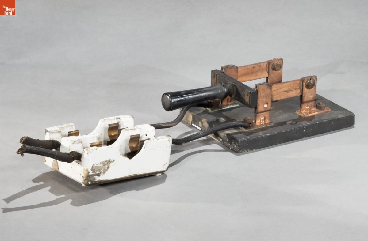 Switches open or close an electrical circuit to turn things off or on. In the late 1800s and early 1900s, knife switches were commonly found in engine or generating rooms, connected to factory motors, or mounted on a building's power and lighting switchboard. Operators pushed the hinged, metal blades into the switch's jaws to send electricity to where it was needed.
