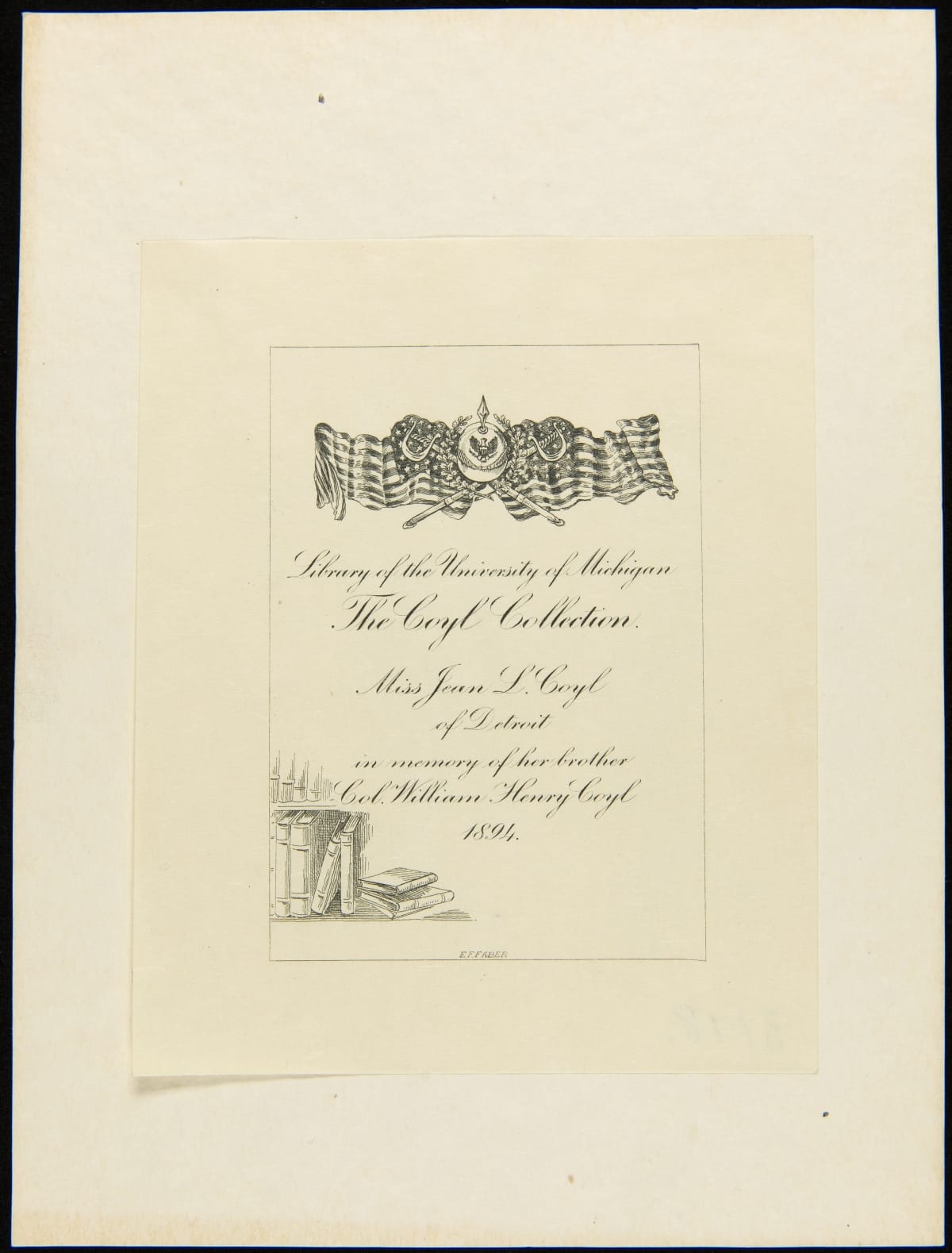 Bookplate of the The Coyl Collection, University of Michigan Library, in Memory of Col. William Henry Coyl, 1894