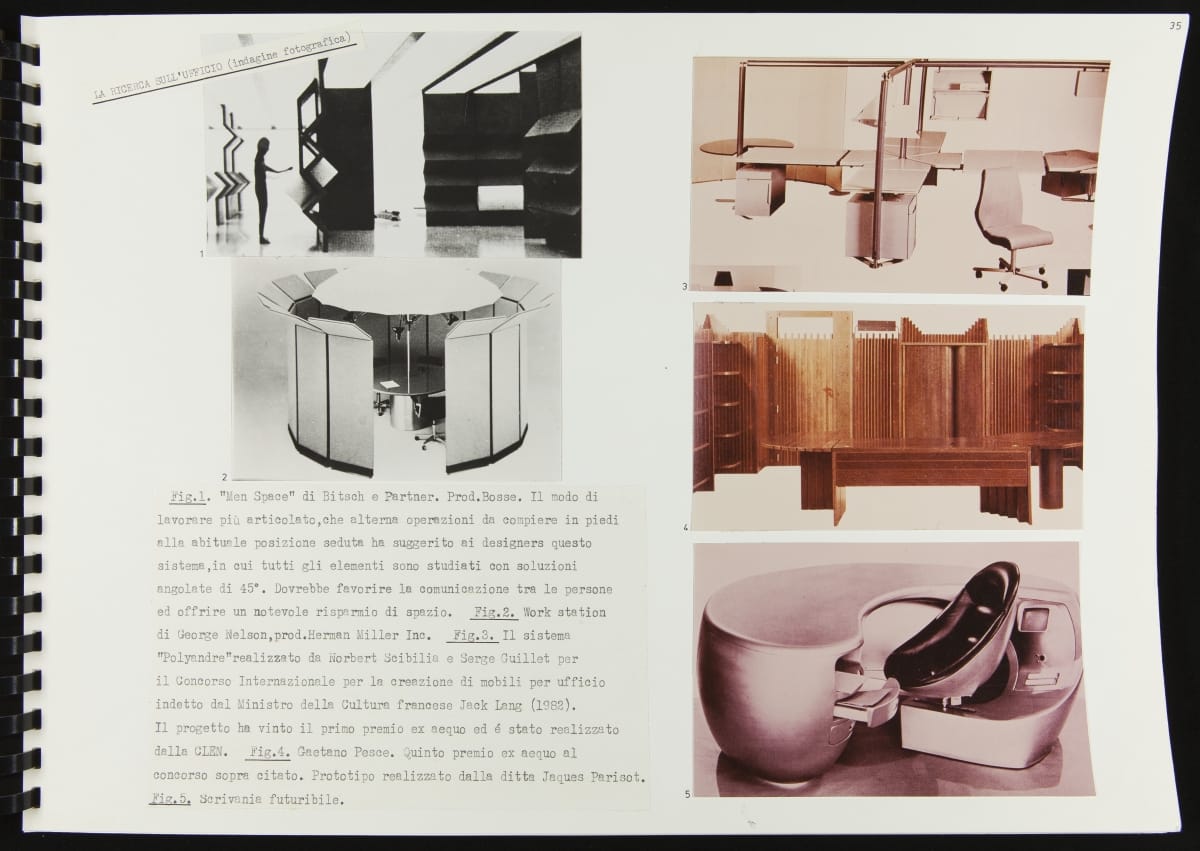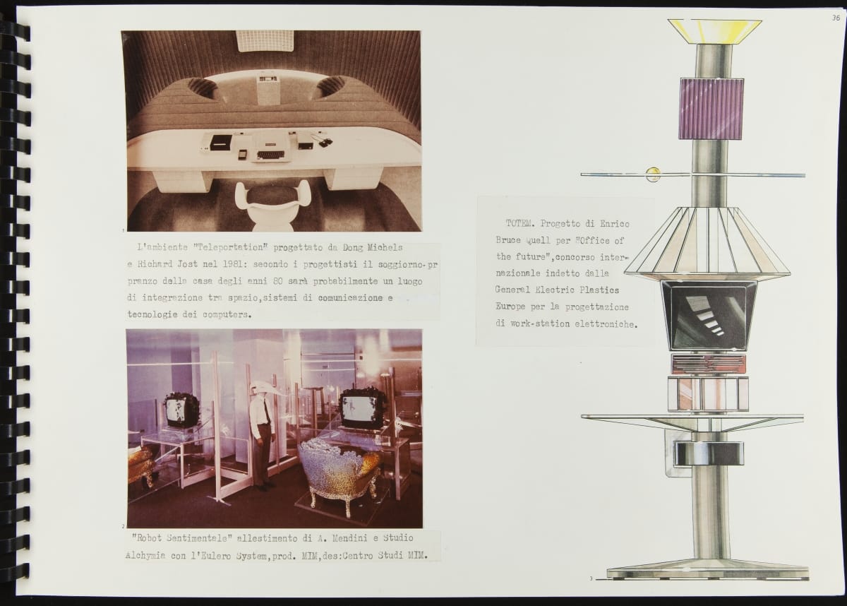 The Walking Office Wearable Computer is a prototype model created by the design group Salotto Dinamico. This proposed device subverted where (and when) the office could be, turning the human body into a mobile workstation. A keyboard, display arc, and cassette recorder became personal adornment--also capable of pairing with an acoustic modem to exchange data through telephone lines.