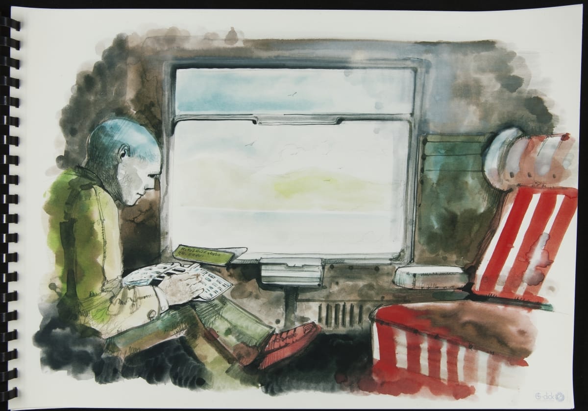 Drawing of Walking Office Wearable Computer Prototype, circa 1984