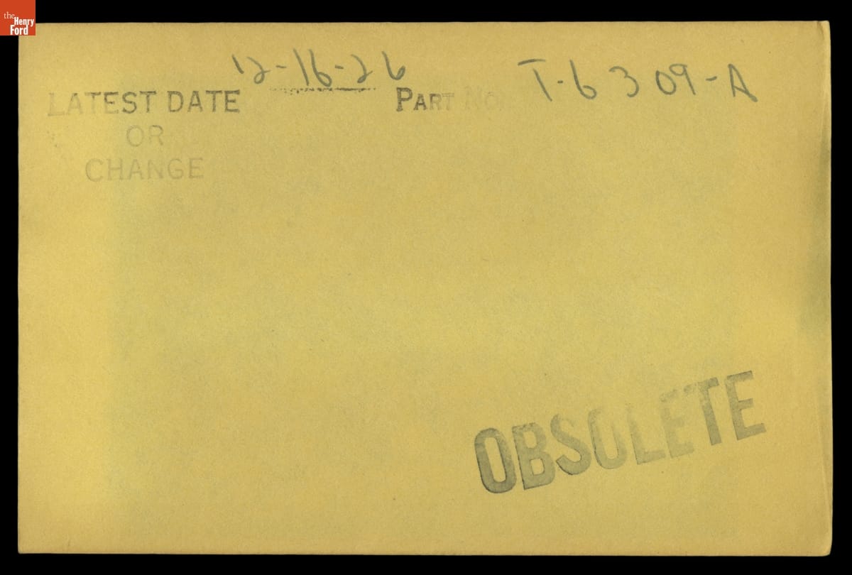 The Ford Motor Company created over a million parts drawings from 1903 to 1957. Many of these drawings specify engineering requirements for the components of Ford-made vehicles--including automobiles, trucks, tractors, military vehicles and Tri-motor airplanes. Others document assembly components, stages of casting and forging, or experimental designs. Beginning in the 1940s, Ford transferred the drawings to microfilm.