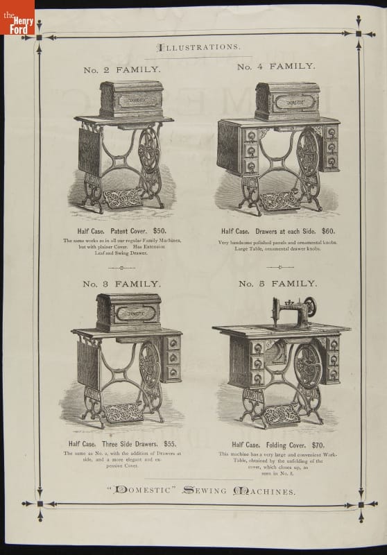 Illustrations of the "Domestic" Sewing Machines, circa 1880