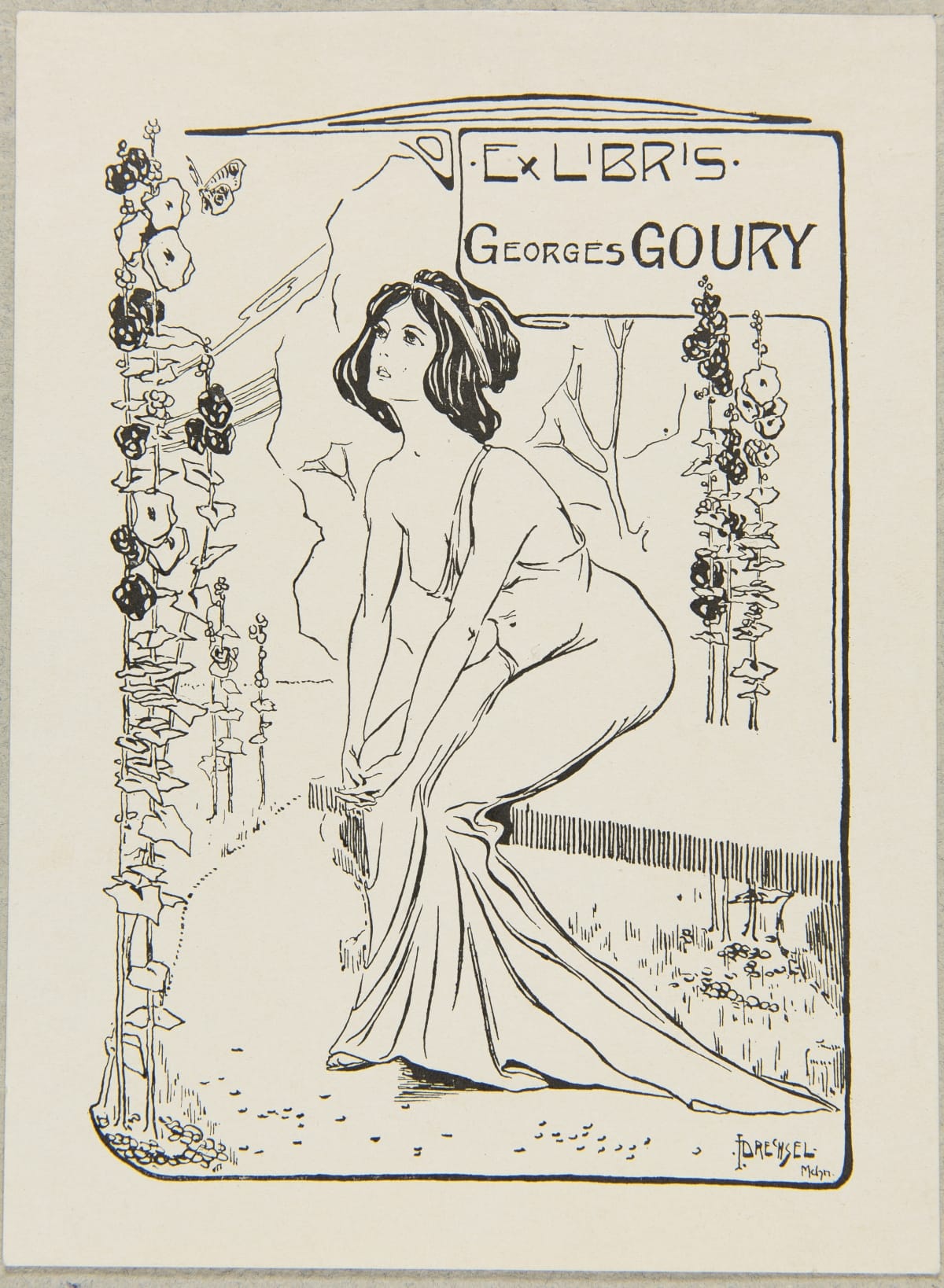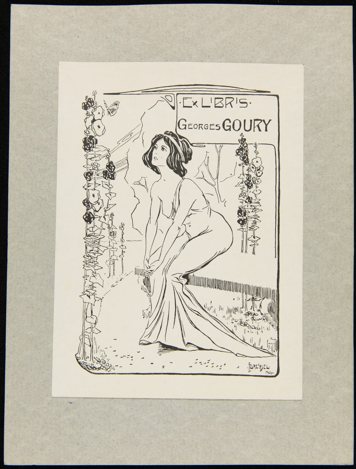 Bookplates show ownership, but they can also tell us more. Often pasted on the inside of a book's front cover or endpaper, these printed labels contain the owner's name and sometimes the words "ex-libris" (Latin for "from the library of"). Coats of arms, crests, other decorative images, poems, mottoes, and even font type provide insight into the beliefs, passions, and interests of the book's owner.