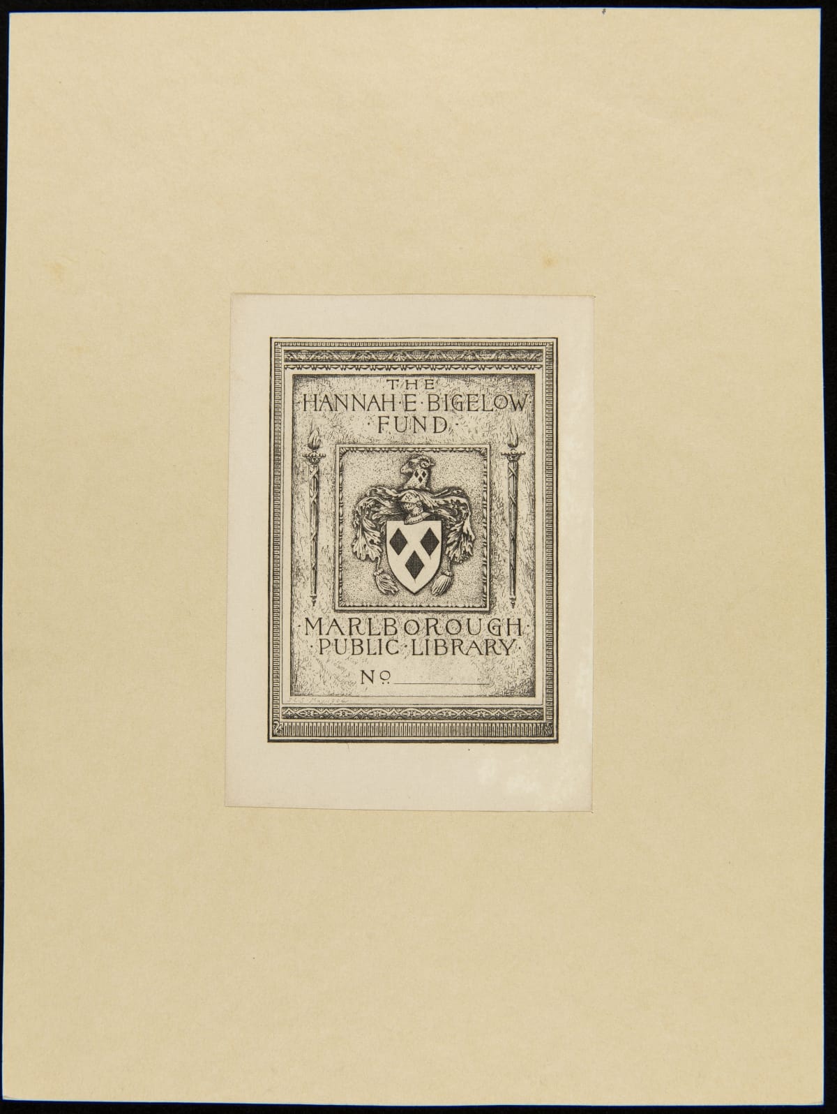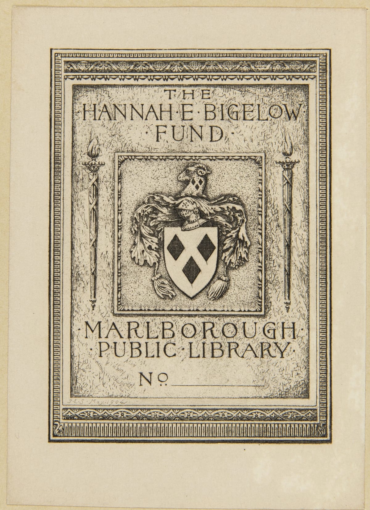 Bookplate for The Hannah E. Bigelow Fund, Marlborough Public Library, 1898