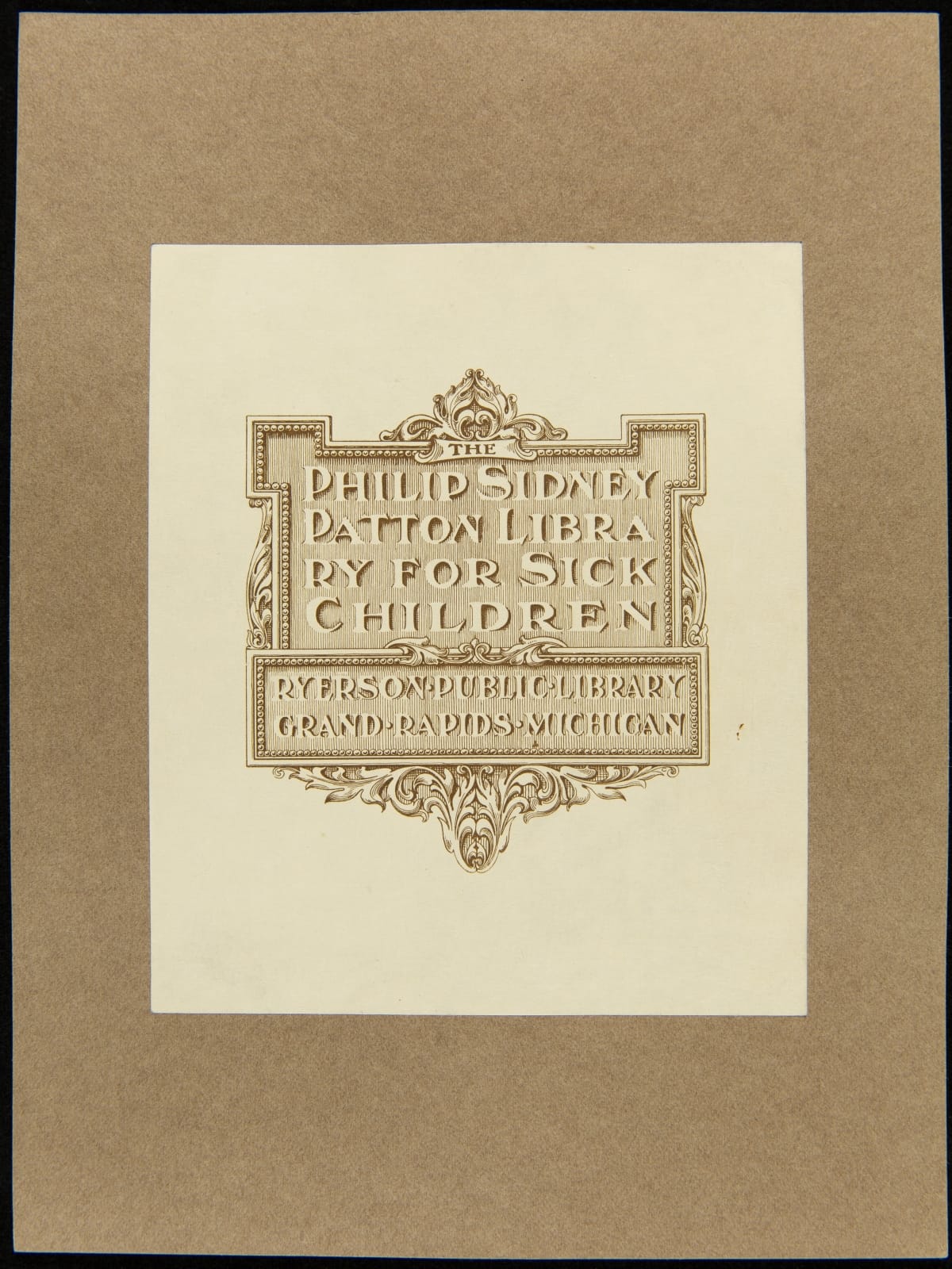Bookplate for the Philip Sidney Patton Library for Sick Children, Ryerson Public Library, Grand Rapids, Michigan, 1903-1904