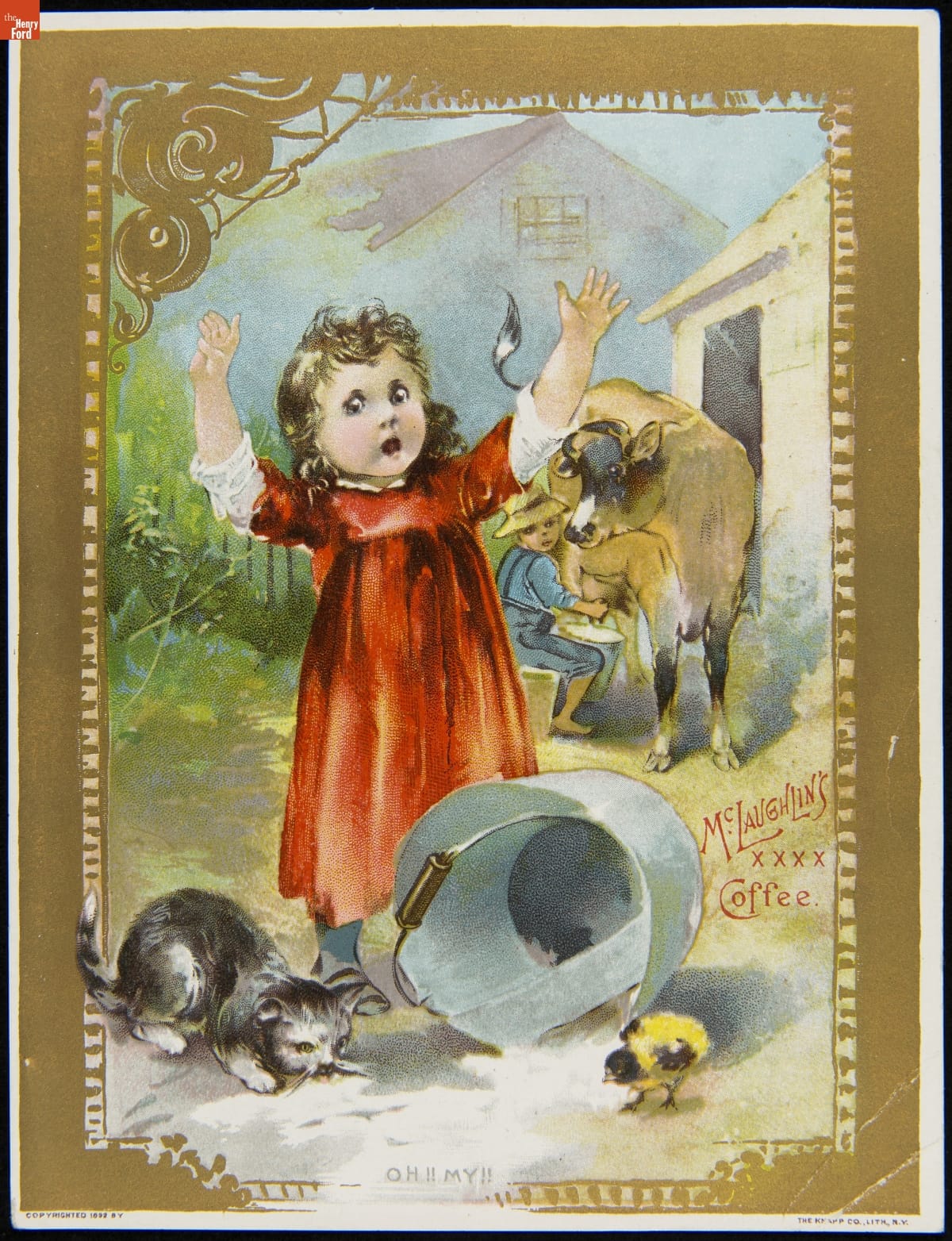 In the last third of the nineteenth century, an unprecedented variety of consumer goods and services flooded the American market. Advertisers, armed with new methods of color printing, bombarded potential customers with trade cards. Americans enjoyed and often saved the vibrant little advertisements found in product packages or distributed by local merchants. Many survive as historical records of commercialism in the United States.