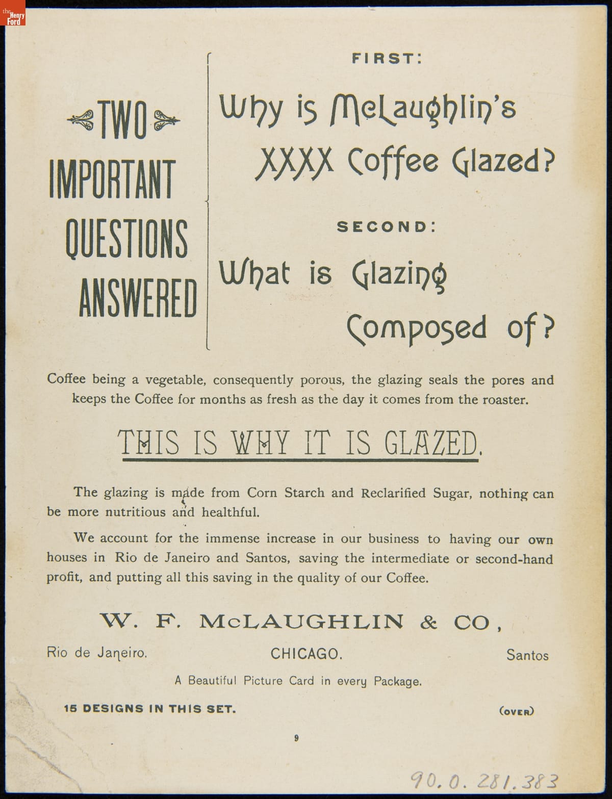 Trade Card for McLaughlin's XXXX Coffee, W.F. McLaughlin & Co., 1892