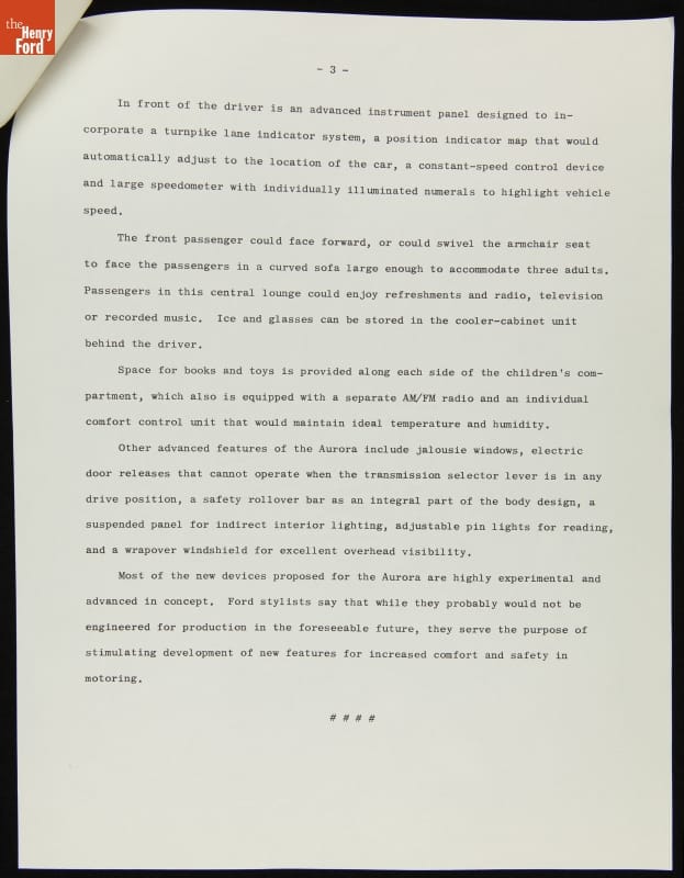 Press Release, General Story, Ford Aurora Concept Car, March 31, 1964