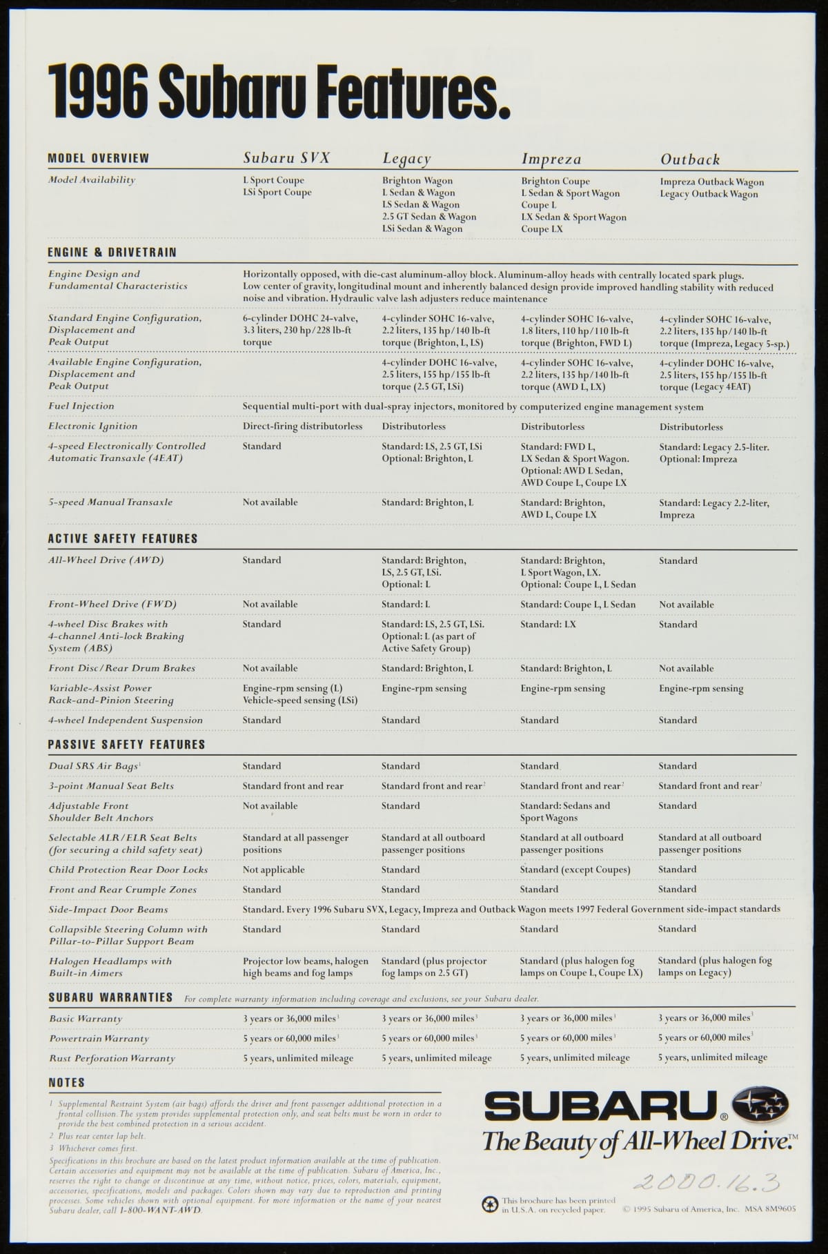 Subaru Sales Brochure, "The Beauty of All-Wheel Drive," 1996