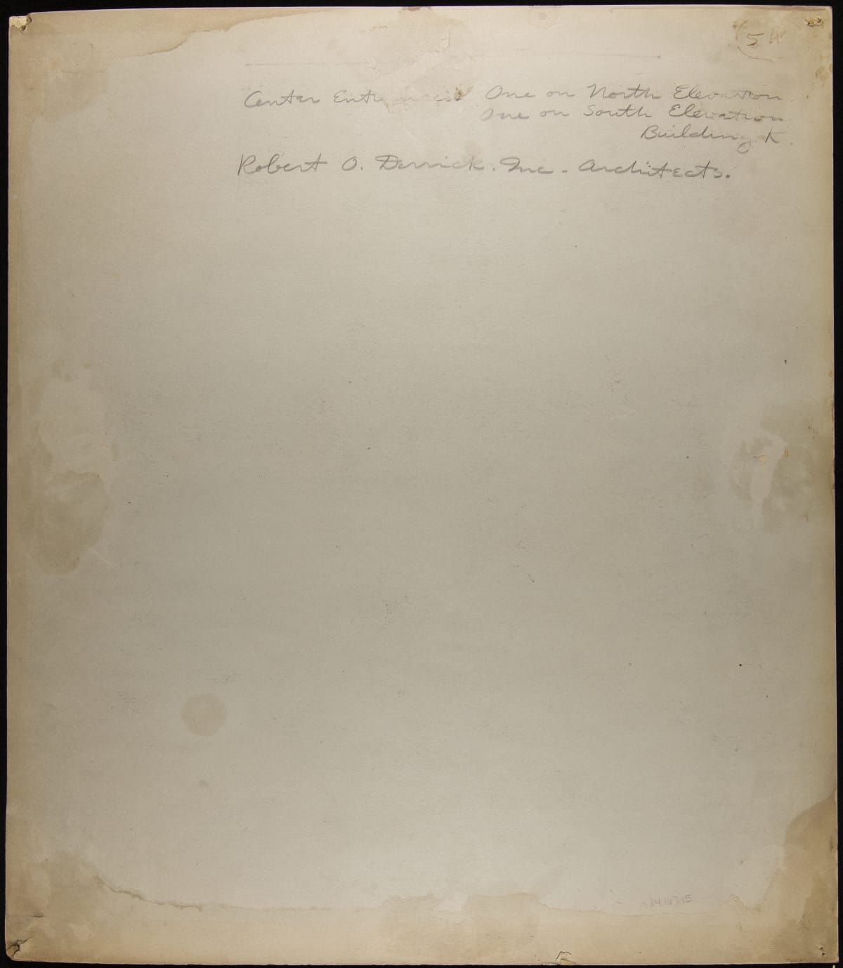 Center Entrances. One on North Elevation / One on South Elevation / Building K / Robert O. Derrick, Inc. Architects