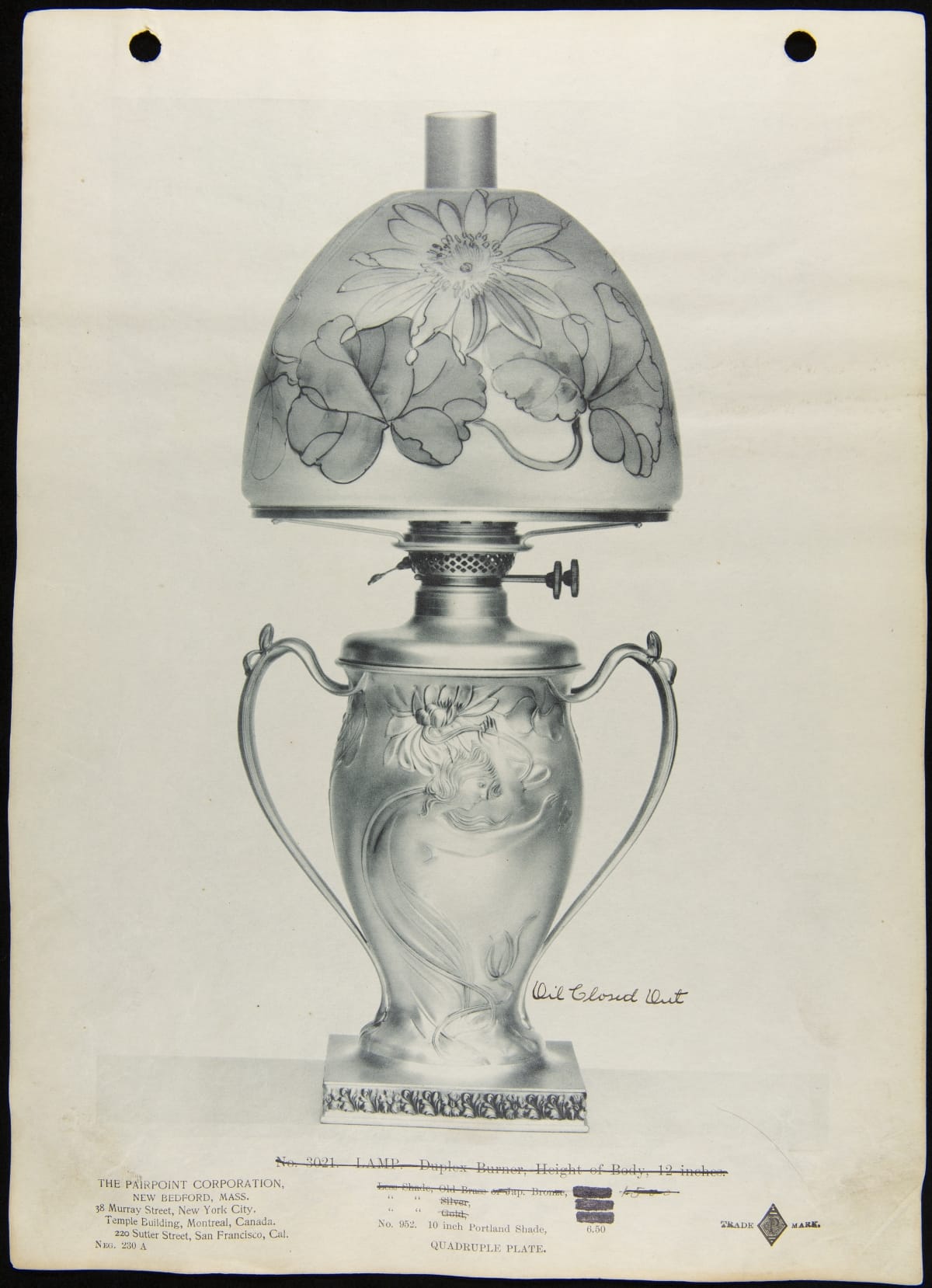 Trade Literature for Pairpoint Oil Lamp No. 3021, 1899-1907