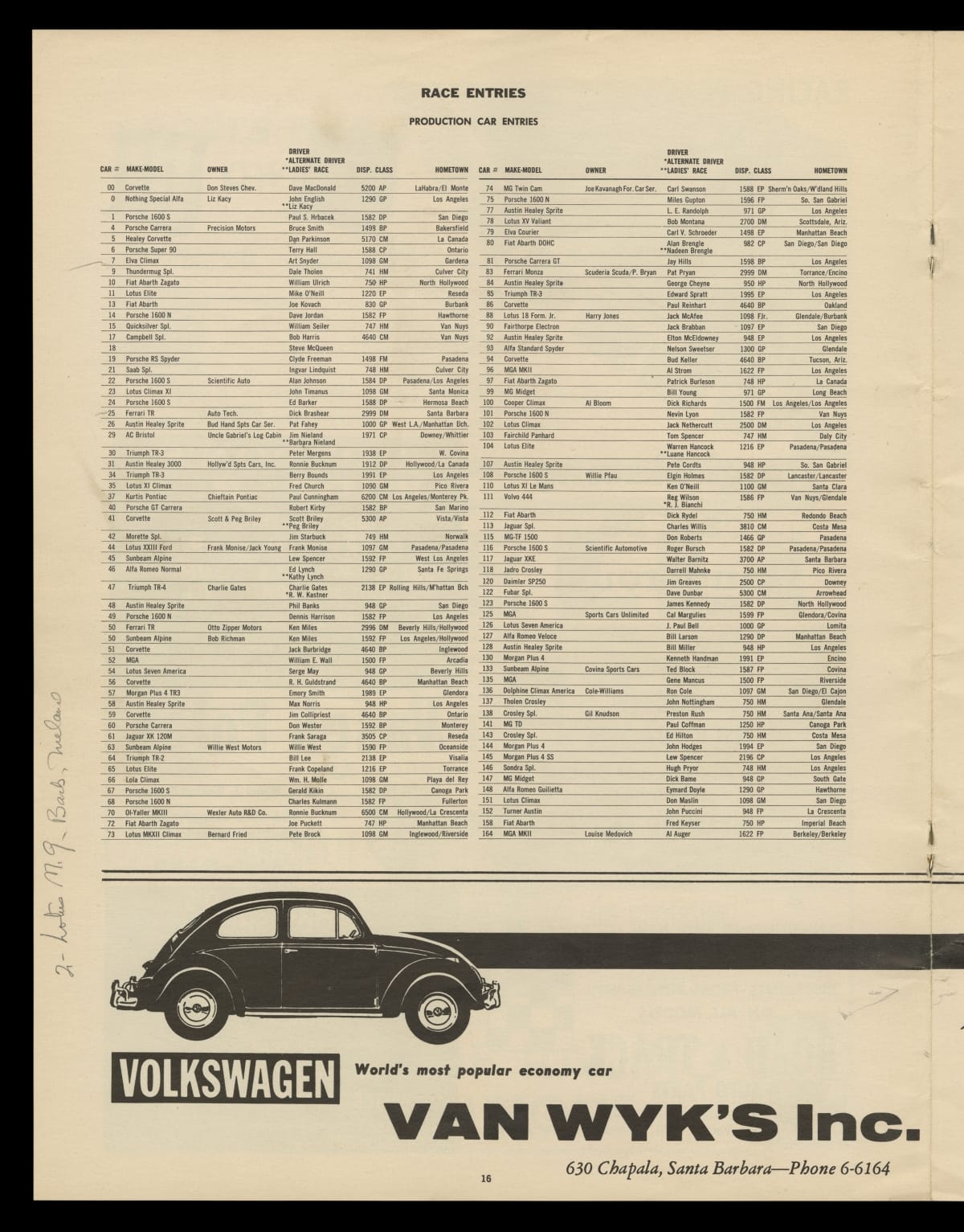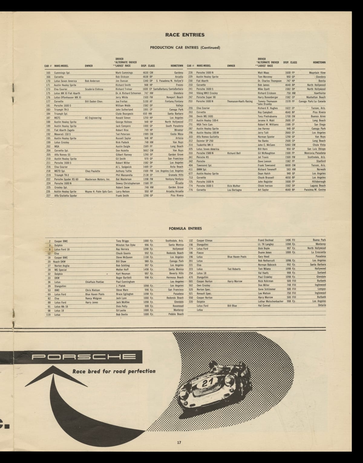 Dave Friedman captured and preserved auto racing history through his photography and memorabilia. His collection of event programs documents key races, cars, drivers, and teams. This program is from a series of races held at the airport near Santa Barbara, California, in late May 1962. The California Region of the Sports Car Club of America organized the event.
