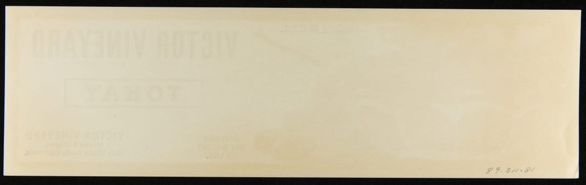 In 1869, the transcontinental railroad opened eastern markets to the West Coast produce industry for the first time. As produce companies shipped crates of fruits and vegetables across the country, they needed a way to distinguish their goods from their competitors'. Colorful, eye-catching labels, like this one for Victor Vineyard Brand Tokay Grapes, were created to attract grocers purchasing goods from wholesale markets.