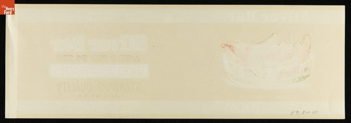 Manufacturers of similar products sought ways to make their company's goods stand out on store shelves. Attractive labels, like this design for Silver Bar Brand Yellow Cling Peaches, helped catch the attention of potential customers -- hopefully encouraging them to purchase the company's product rather than that of a competitor.