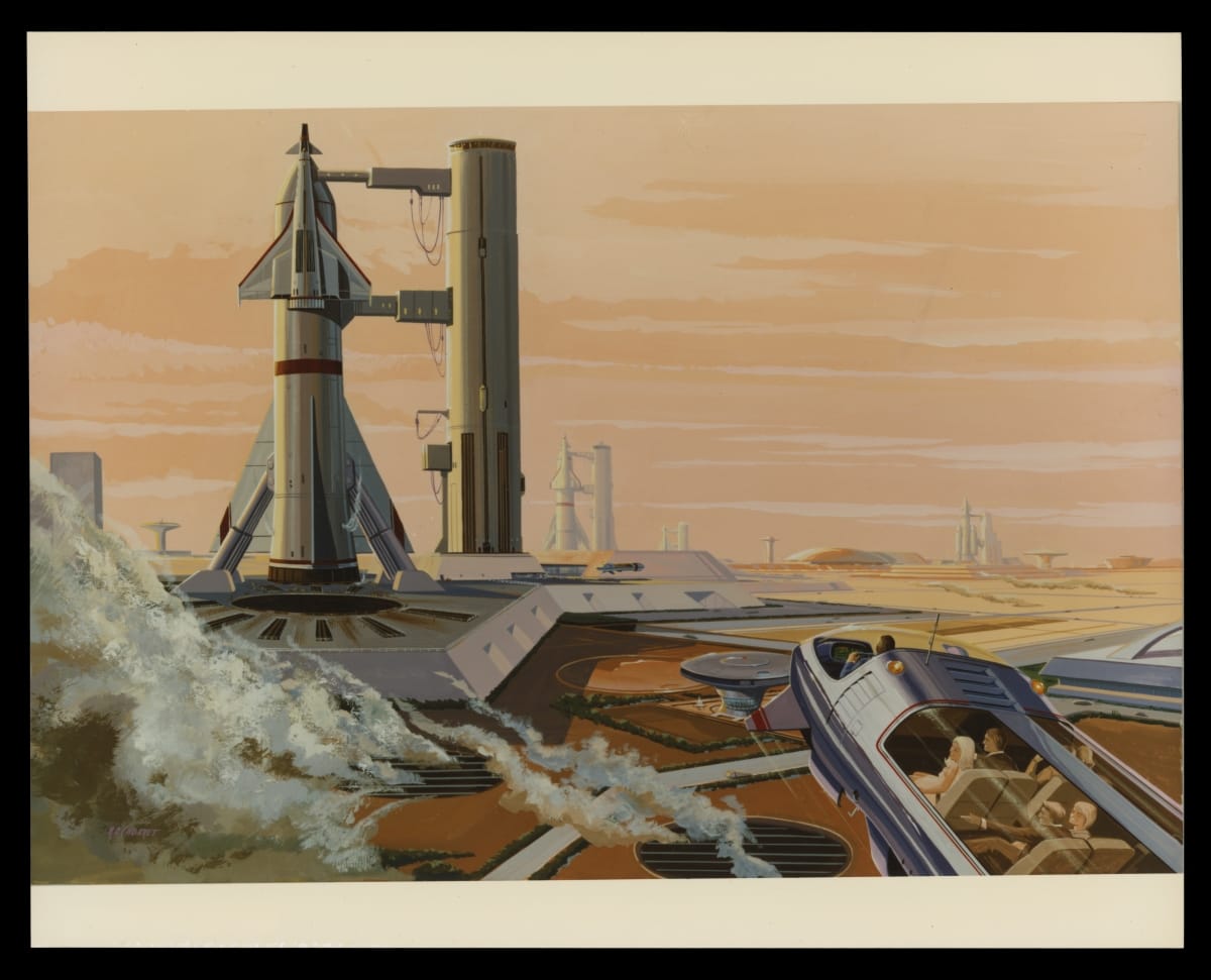 Following his retirement after 42 years in design at General Motors, Bill Mitchell operated his own consulting firm, William L. Mitchell Design, from 1977 to 1984. Mitchell's firm produced multiple spacecraft design concepts for aerospace conglomerate Rockwell International. The renderings included proposals for various civil, military and research spacecraft.