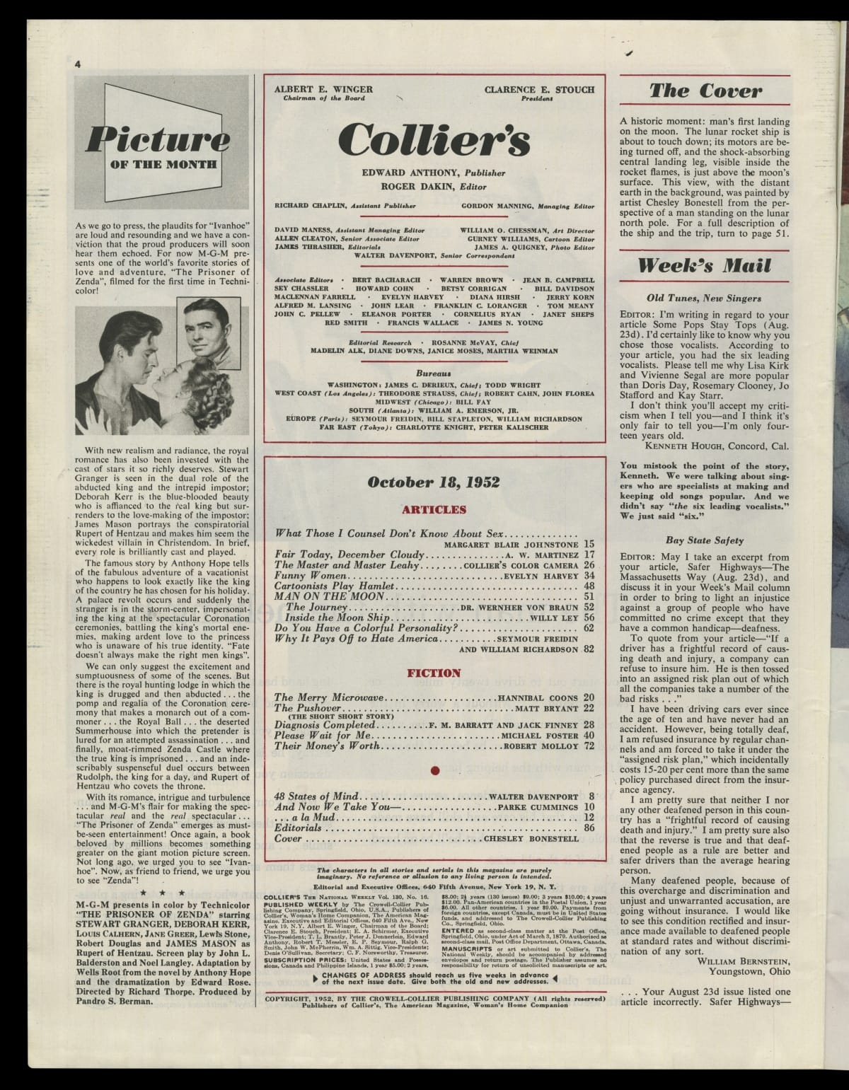 Collier's Magazine, October 18, 1952, "Man on the Moon"