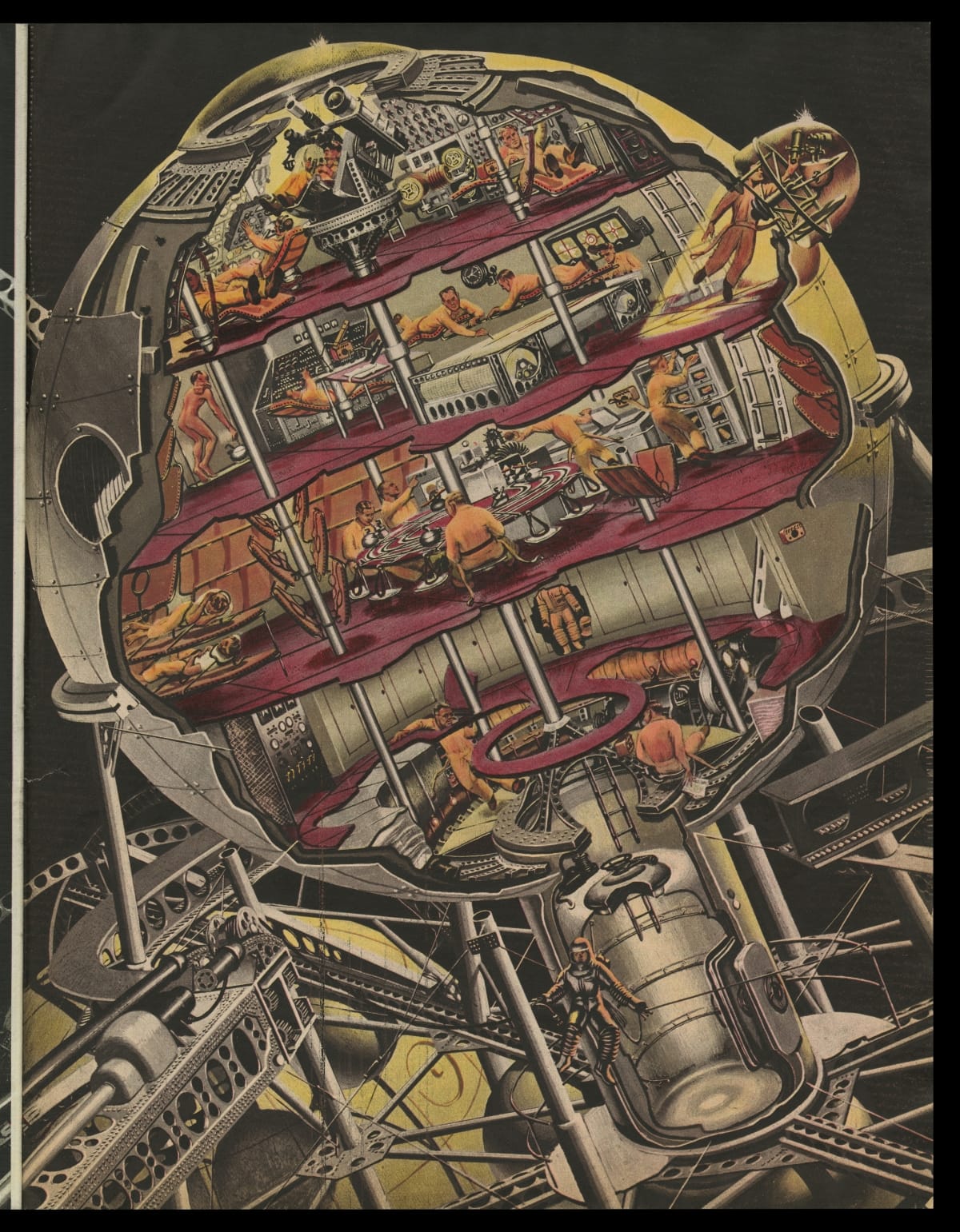 American painter, designer, and illustrator Chesley Bonestell created the cover artwork for this 1952 issue of Collier's. Bonestell imagined the future of space travel years before it was possible. His scientifically informed visions manifested in his illustrations popularized the idea of manned-space missions and inspired science-fiction writers, filmmakers, and the scientists and engineers who later worked in the U.S. space program.