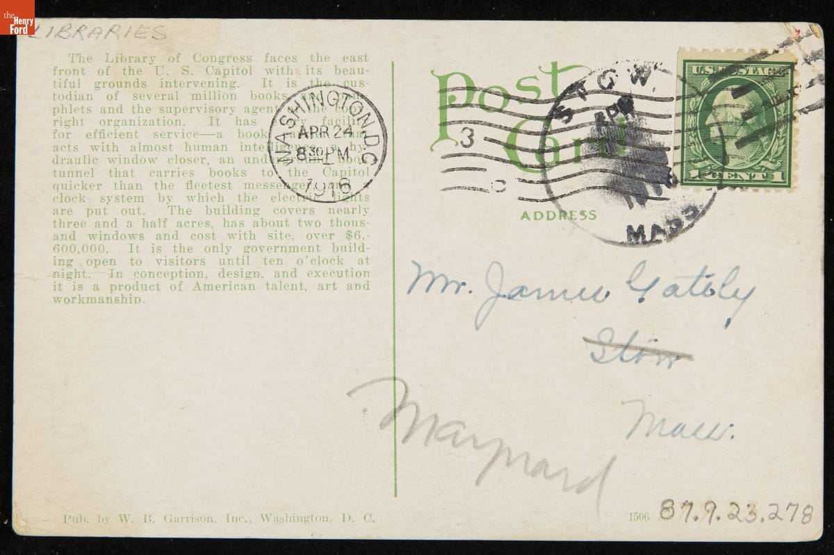 Postcard, "Library of Congress, Washington, D.C.," circa 1916