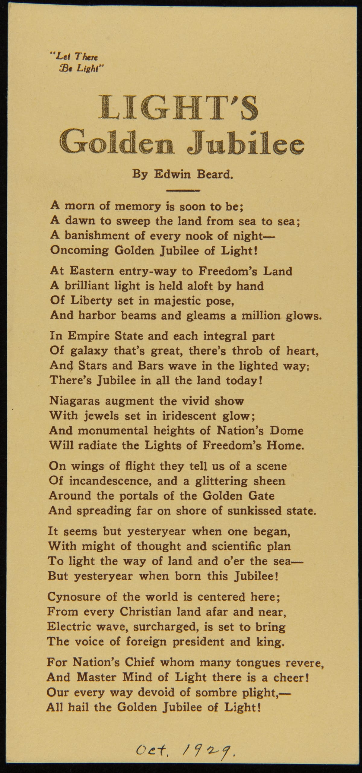 Light's Golden Jubilee, 1929