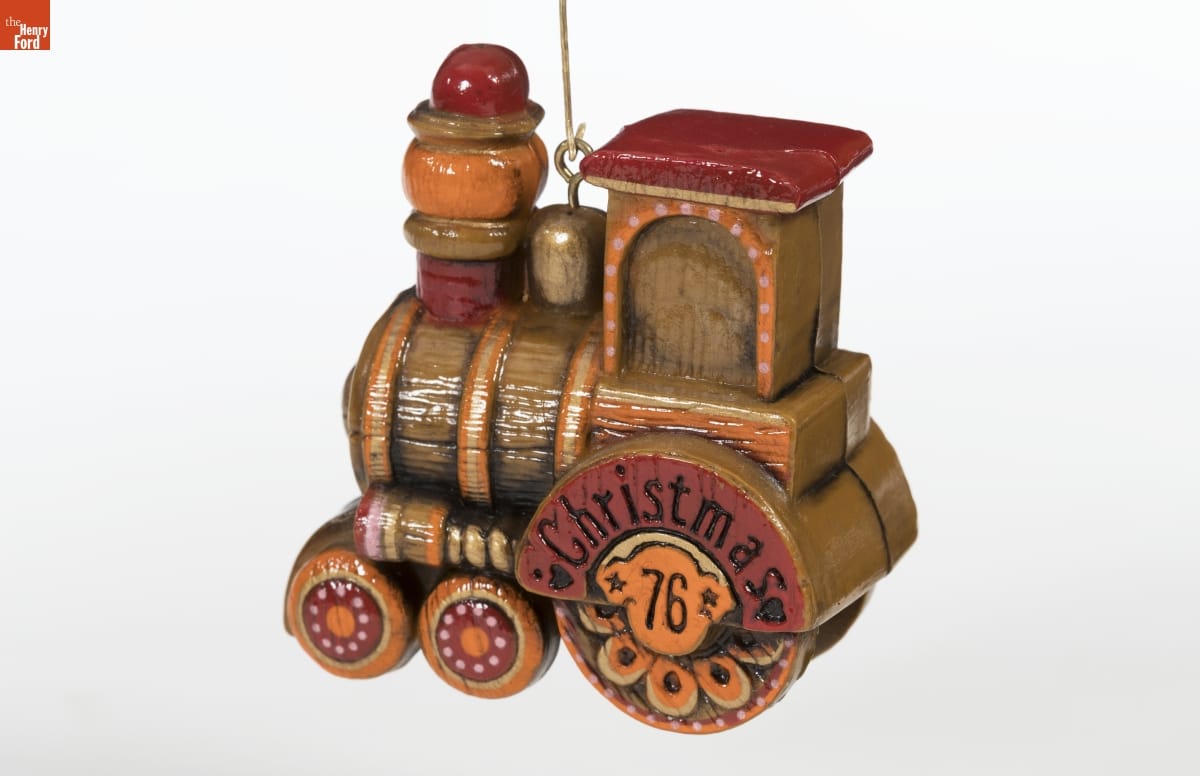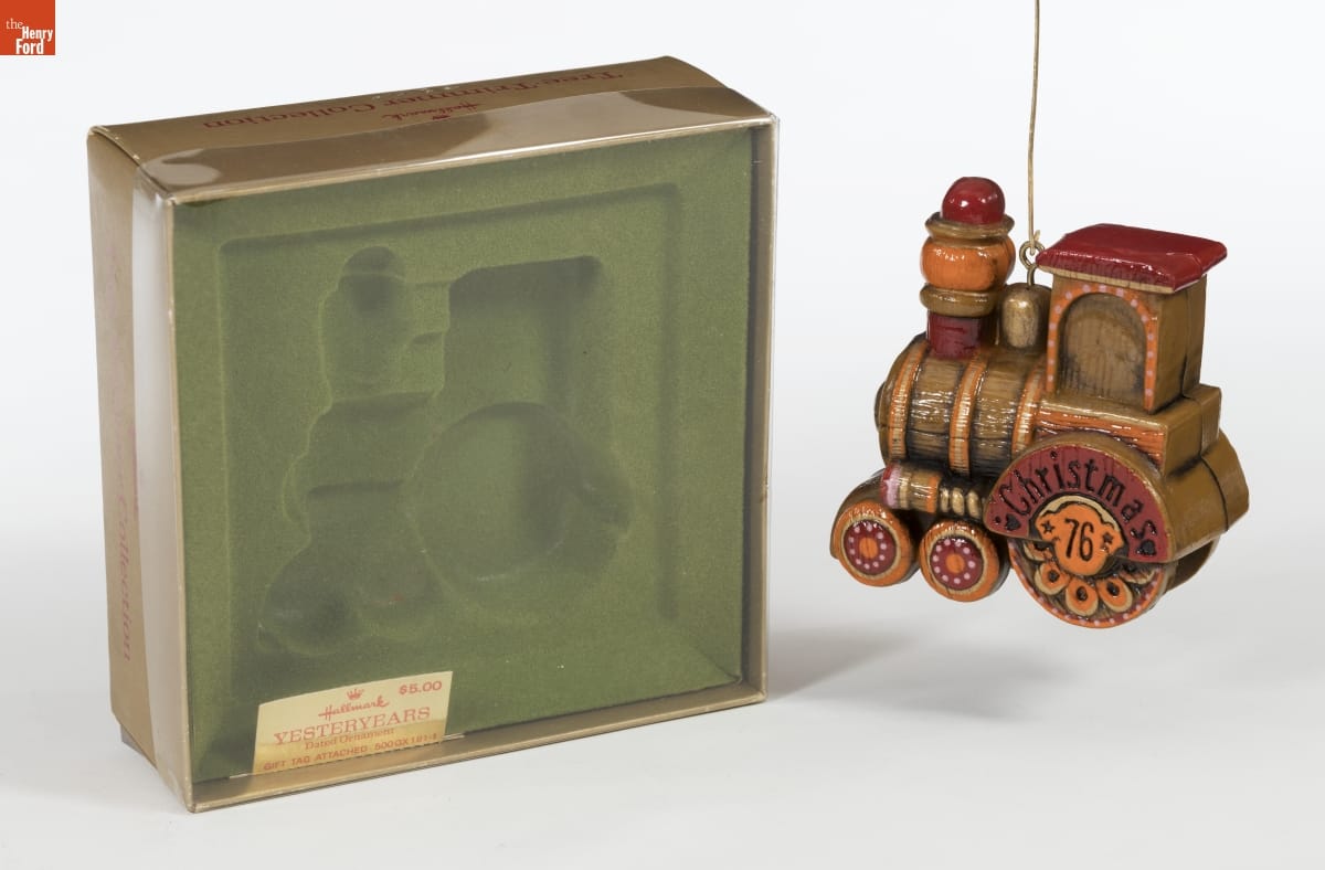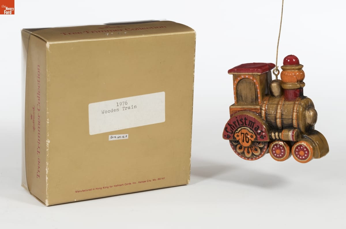 This ornament is both traditional and up-to-date. Iconic toys--like this train--have been associated with Christmas since the early 20th century. But Hallmark's Yesteryear Train--made to look like an old-fashioned wooden toy--sports fashionable colors of the mid-1970s. This ornament dates from America's Bicentennial year, when many Americans particularly cherished things connected to the past.