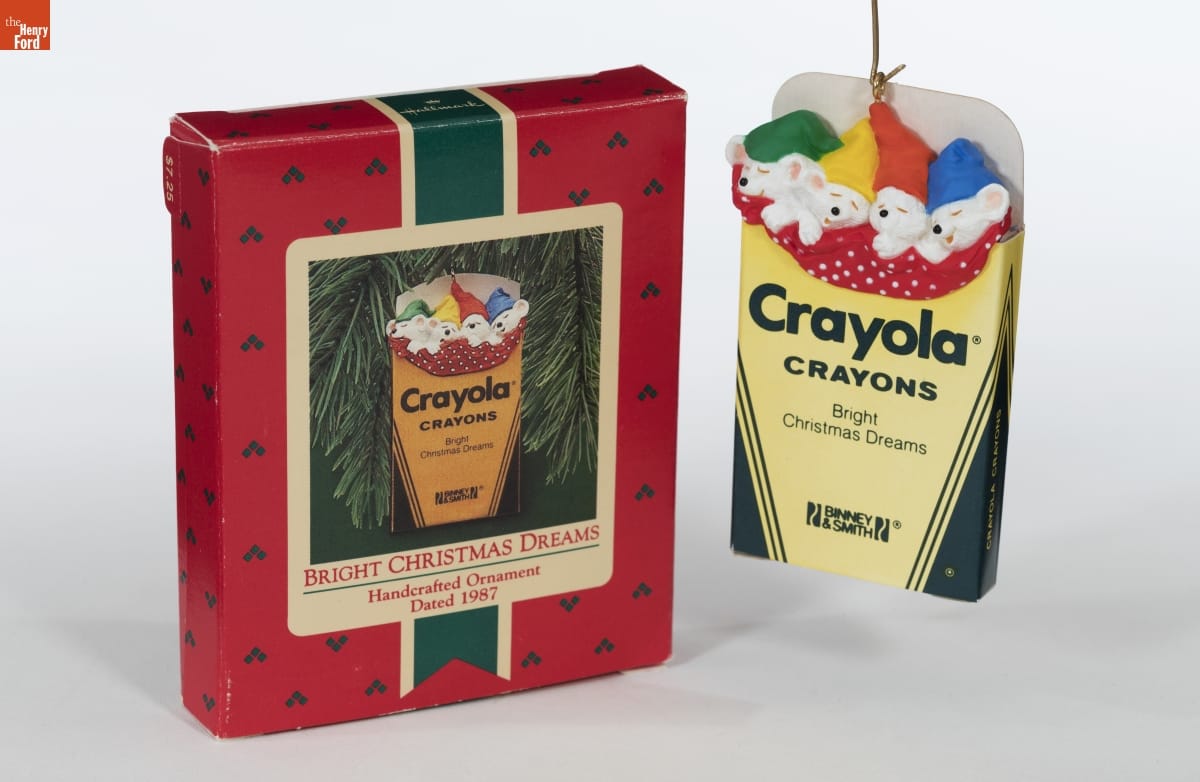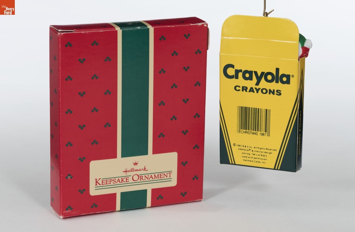 Already known for greeting cards, Hallmark introduced a line of Christmas ornaments in 1973. The company's annual release of an increasing array of ornaments appealed to customers' interest in marking memories and milestones as well as expressing one's personality and unique tastes. This was the first ornament--in a series still being produced--depicting Crayola crayons. Hallmark acquired Crayola in 1984.