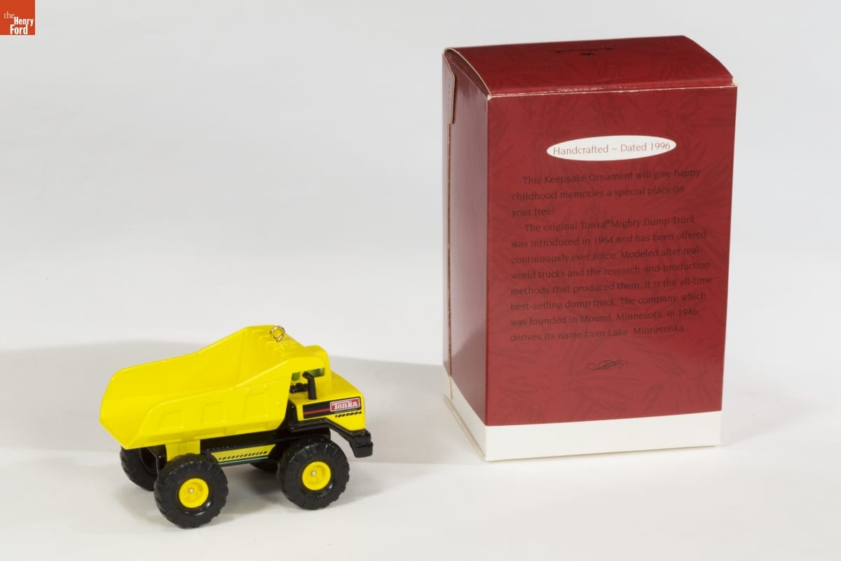 Handcrafted - Dated 1996 / This Keepsake Ornament will give happy childhood memories a special place on your tree! / The original Tonka Mighty Dump Truck was introduced in 1964 and has been offered continuously ever since. Modeled after real-world trucks and the research-and-production methods that produced them, it is the all-time best-selling dump truck. The company, which was founded in Mound, Minnesota, in 1946, derives its name from Lake Minnetonka.