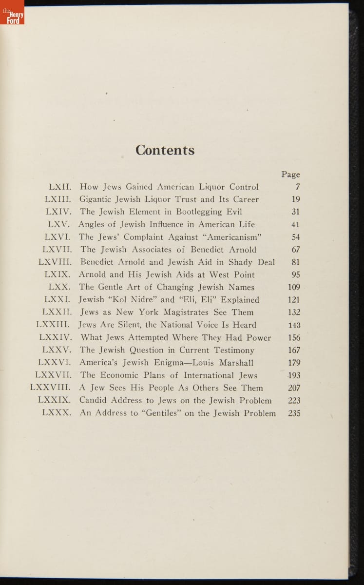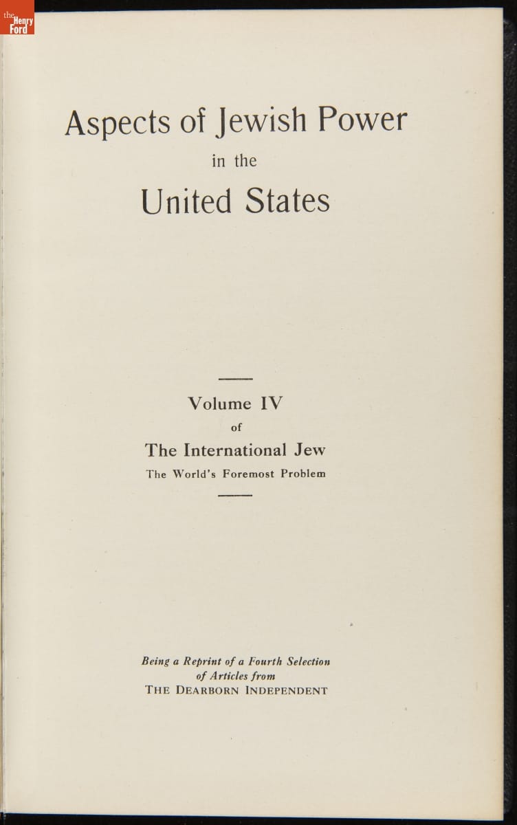 Henry Ford published the weekly The Dearborn Independent from 1919 to 1927 as a forum for his views. Between 1920 and 1922, the paper ran a series of front-page articles (penned by its editor, William Cameron) entitled The International Jew that denounced all things Jewish. Many of these articles were later compiled, reprinted, and distributed in a four-volume set. These defamatory articles exposed Ford's deep anti-Semitic sentiments and sadly legitimized these prejudices to hundreds of thousands of readers. Though Ford later apologized and printed a retraction, this episode forever tarnished the influential automaker's reputation.