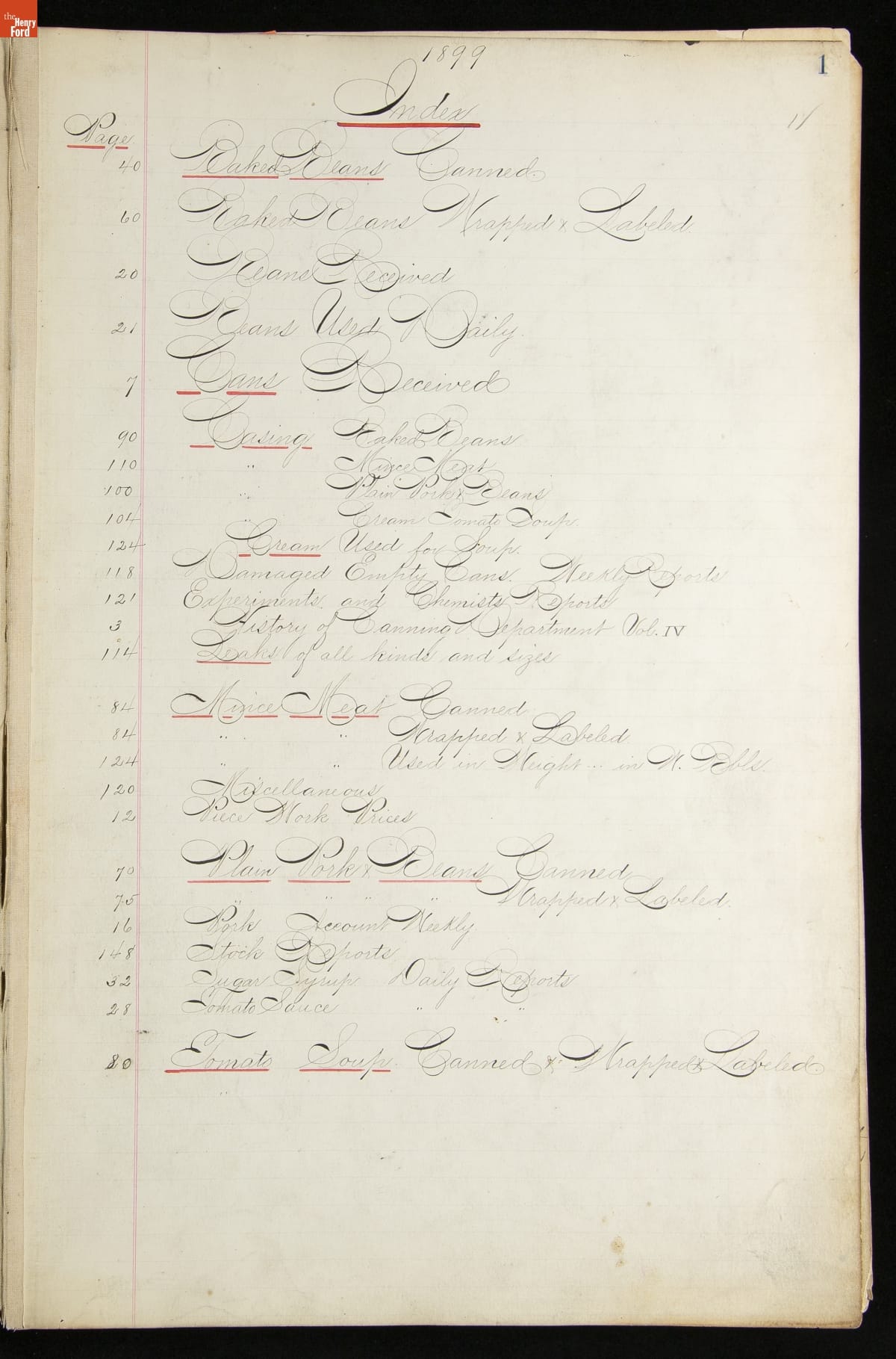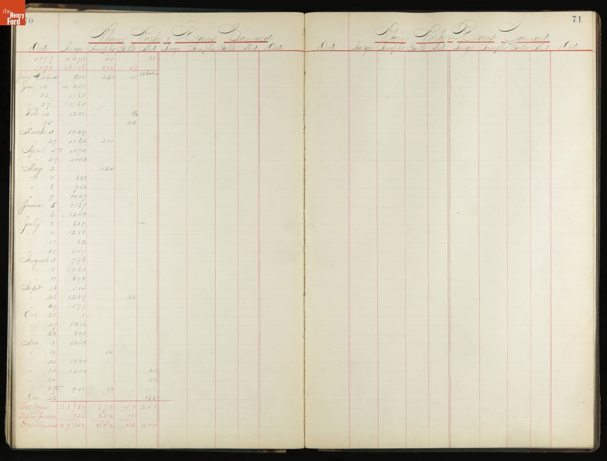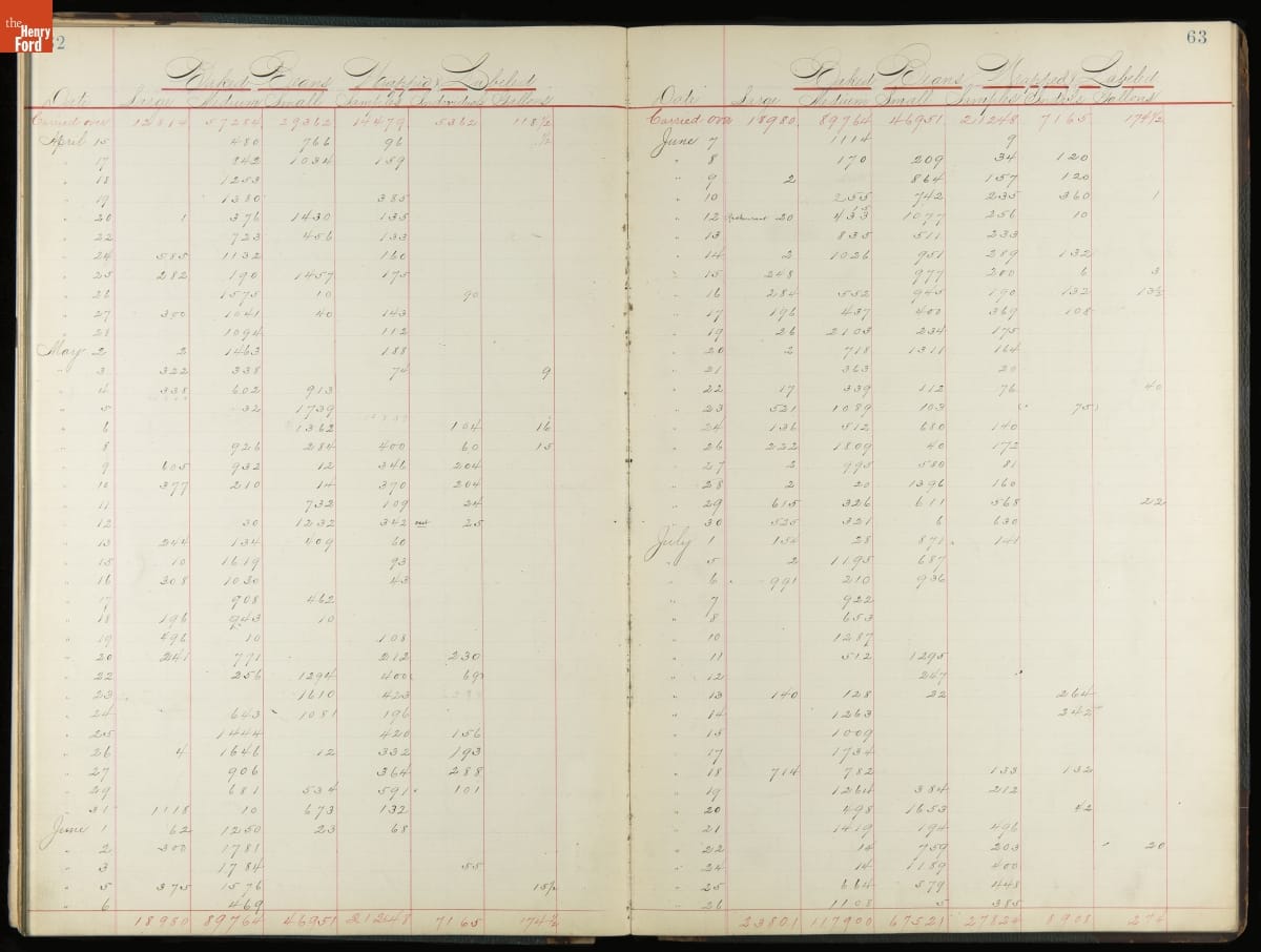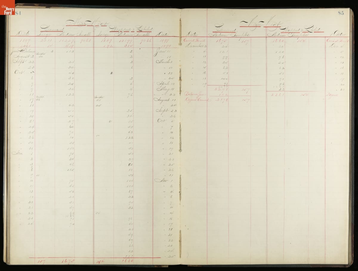 This inventory for the H.J. Heinz Company Canning Department includes a brief history of the department, which canned baked beans, tomato soup, and pork beans, to name a few. Additionally, this book contains a record of the process by the numbers, including the number of cans filled, labeled, and packaged for shipping, and the number of damaged cans per week, among other records.