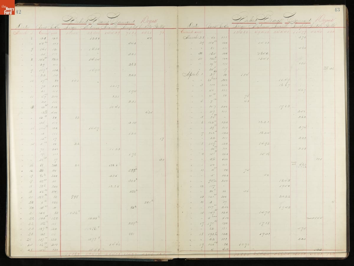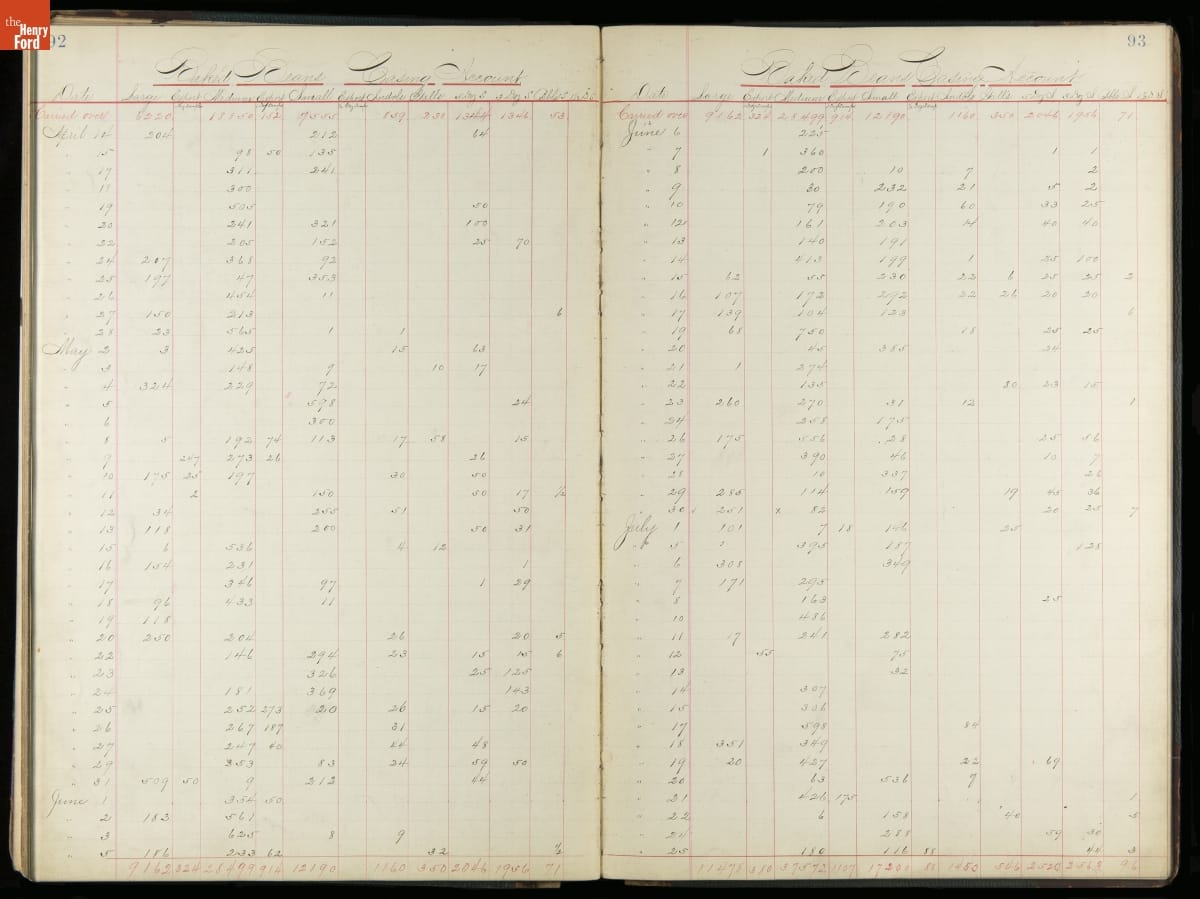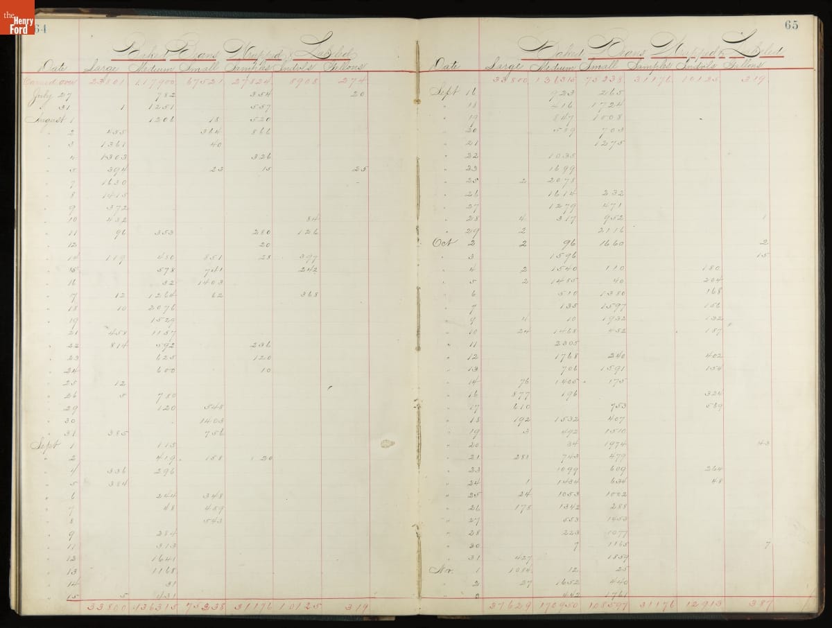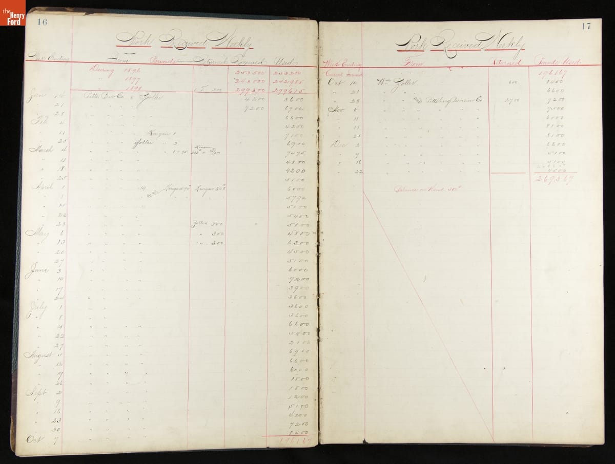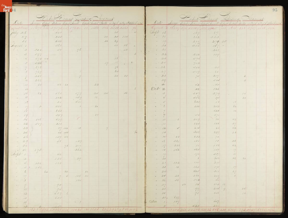This inventory for the H.J. Heinz Company Canning Department includes a brief history of the department, which canned baked beans, tomato soup, and pork beans, to name a few. Additionally, this book contains a record of the process by the numbers, including the number of cans filled, labeled, and packaged for shipping, and the number of damaged cans per week, among other records.
