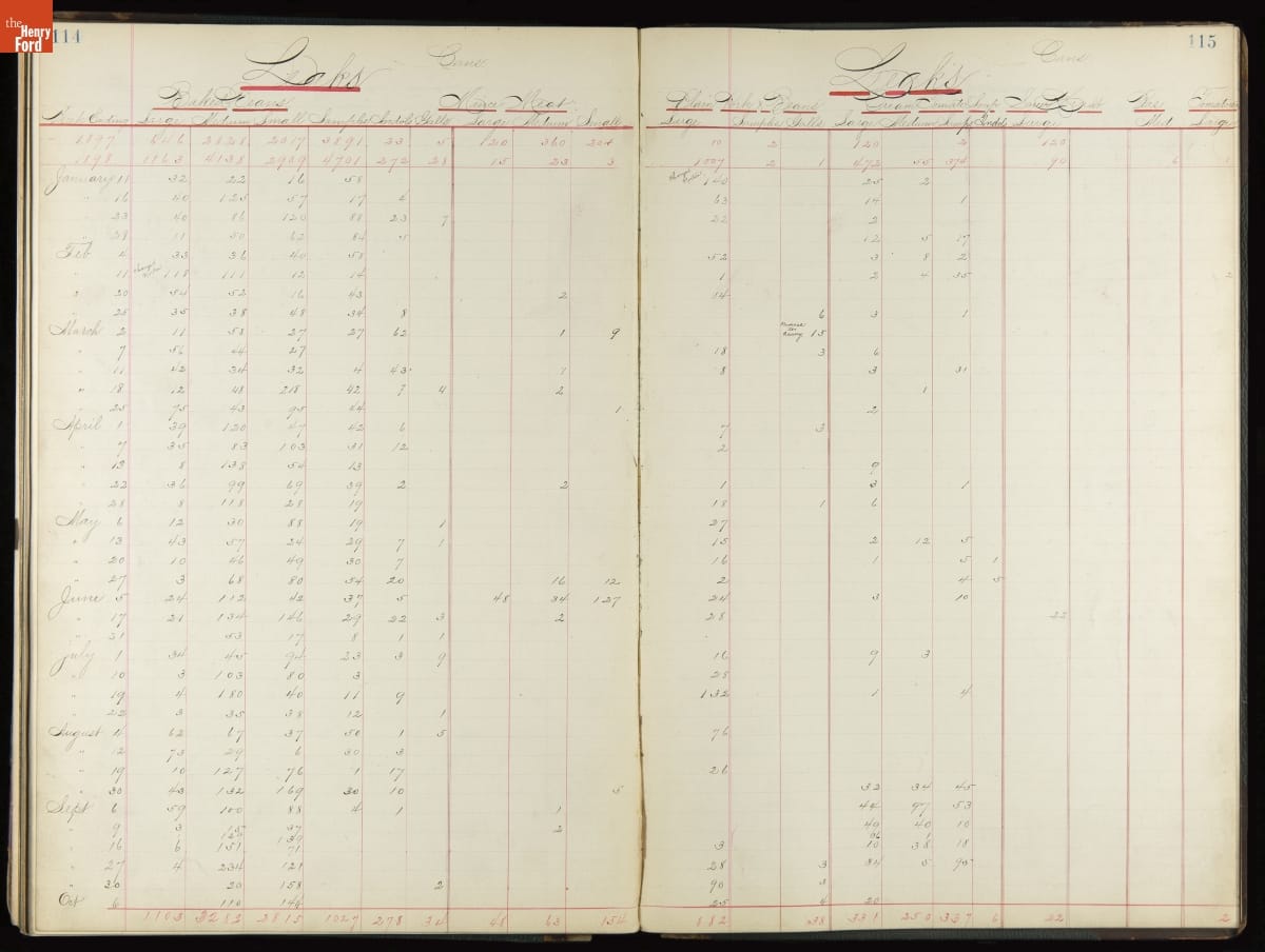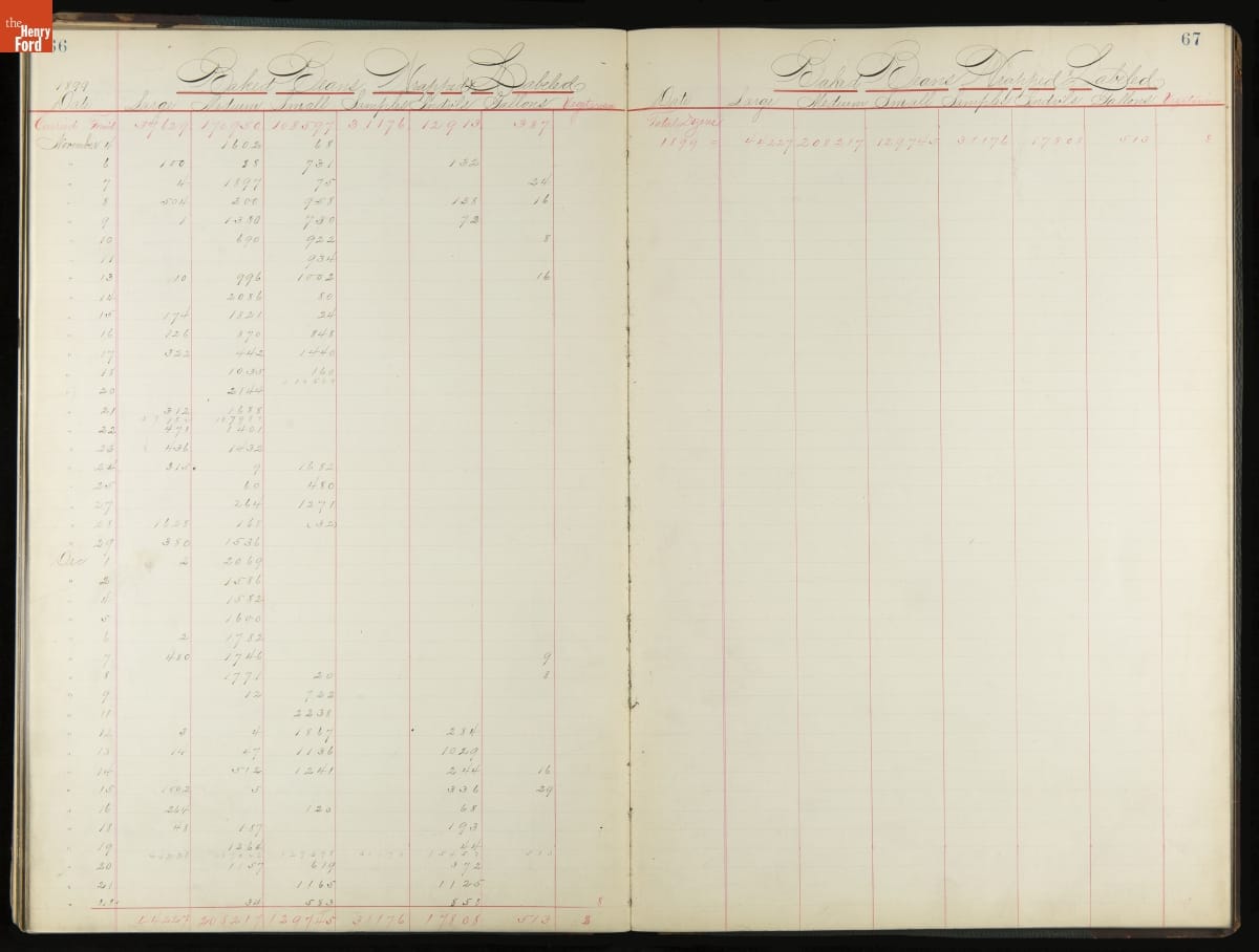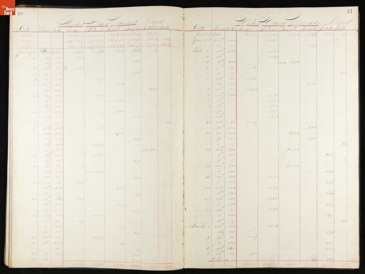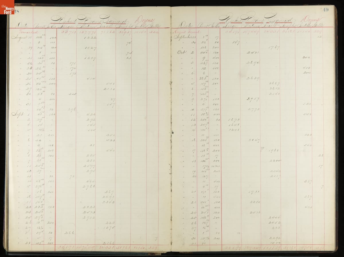 This inventory for the H.J. Heinz Company Canning Department includes a brief history of the department, which canned baked beans, tomato soup, and pork beans, to name a few. Additionally, this book contains a record of the process by the numbers, including the number of cans filled, labeled, and packaged for shipping, and the number of damaged cans per week, among other records.
