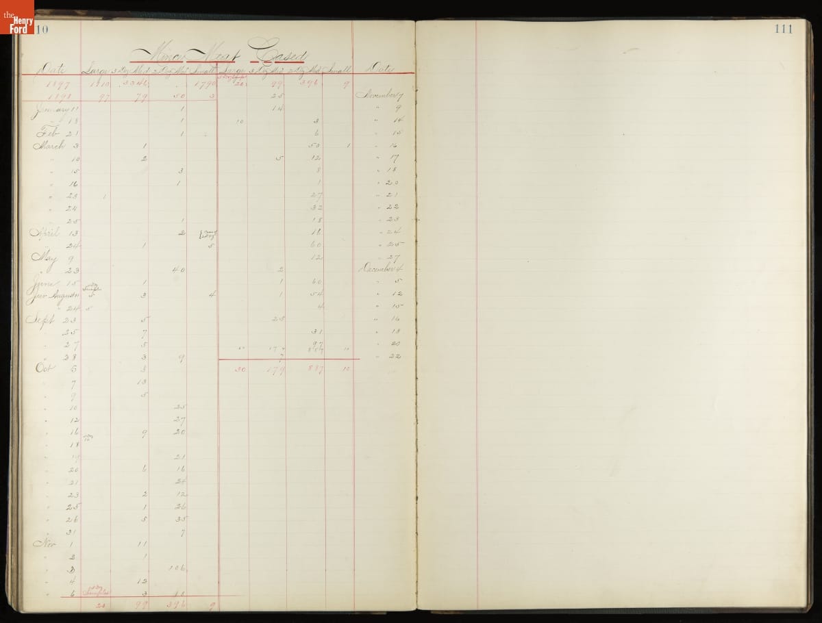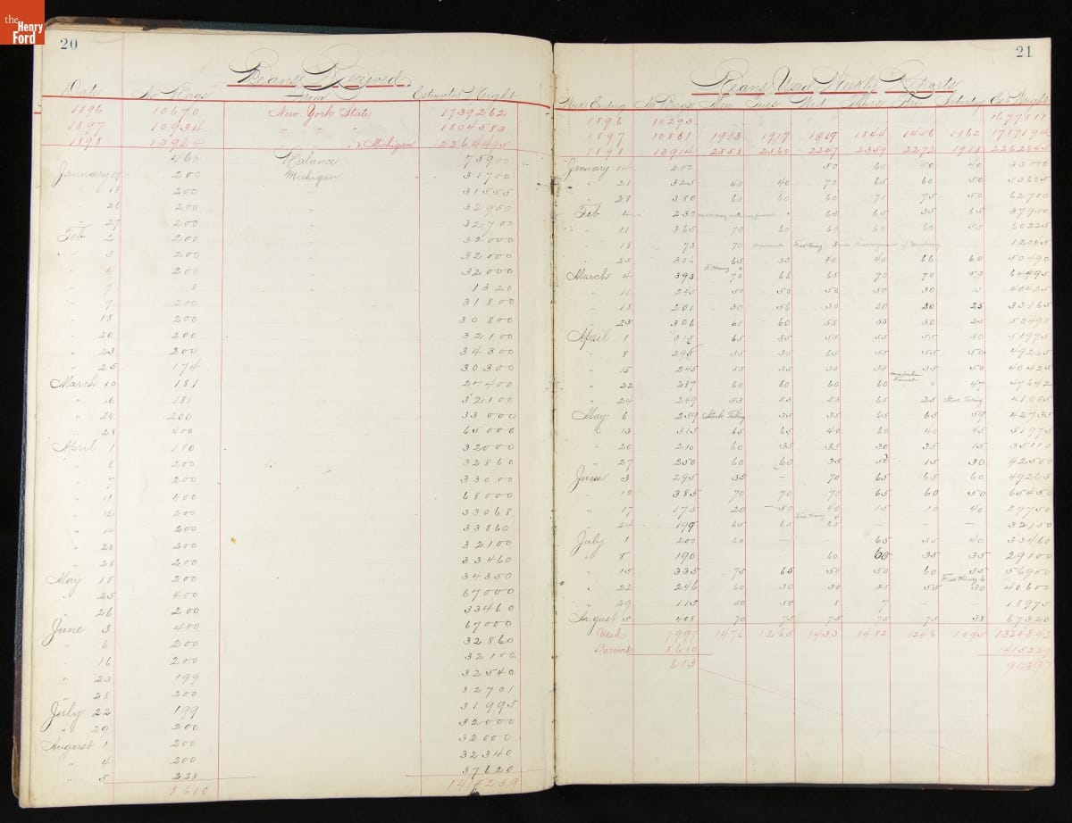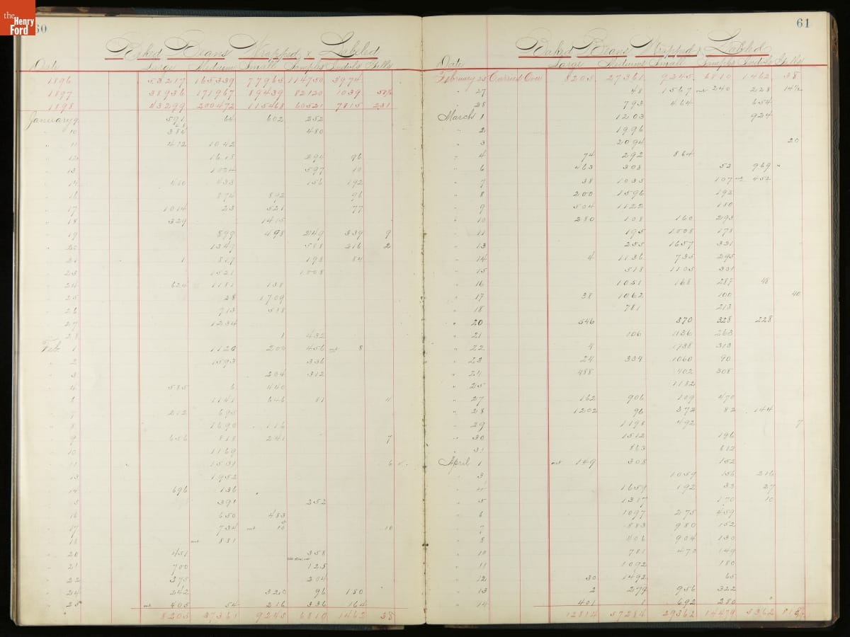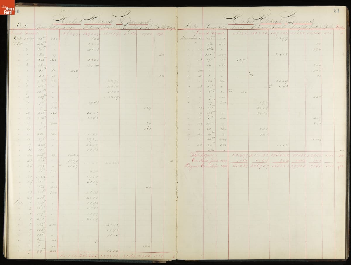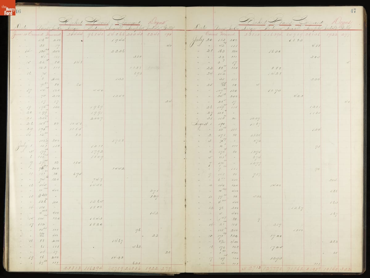 This inventory for the H.J. Heinz Company Canning Department includes a brief history of the department, which canned baked beans, tomato soup, and pork beans, to name a few. Additionally, this book contains a record of the process by the numbers, including the number of cans filled, labeled, and packaged for shipping, and the number of damaged cans per week, among other records.