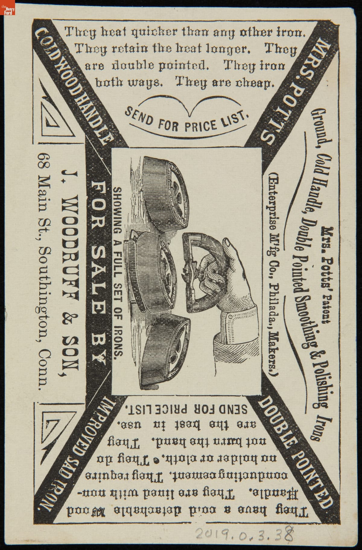Trade Card for Mrs. Potts Sad Irons, circa 1875