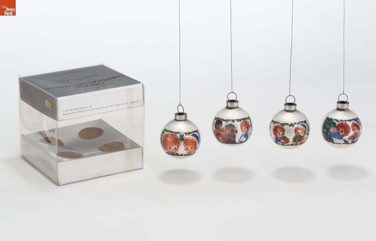 Already known for greeting cards, Hallmark introduced a line of Christmas ornaments in 1973. The company's annual release of an increasing array of ornaments appealed to customers' interest in marking memories and milestones as well as expressing one's personality and unique tastes. In 1974, Hallmark began producing ornaments featuring Raggedy Ann and Andy--the mop-headed characters based on stories by Johnny Gruelle.