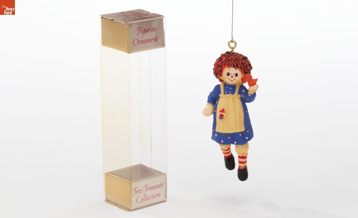 Already known for greeting cards, Hallmark introduced a line of Christmas ornaments in 1973. The company's annual release of an increasing array of ornaments appealed to customers' interest in marking memories and milestones as well as expressing one's personality and unique tastes. In 1974, Hallmark began producing ornaments featuring Raggedy Ann and Andy--the mop-headed characters based on stories by Johnny Gruelle.
