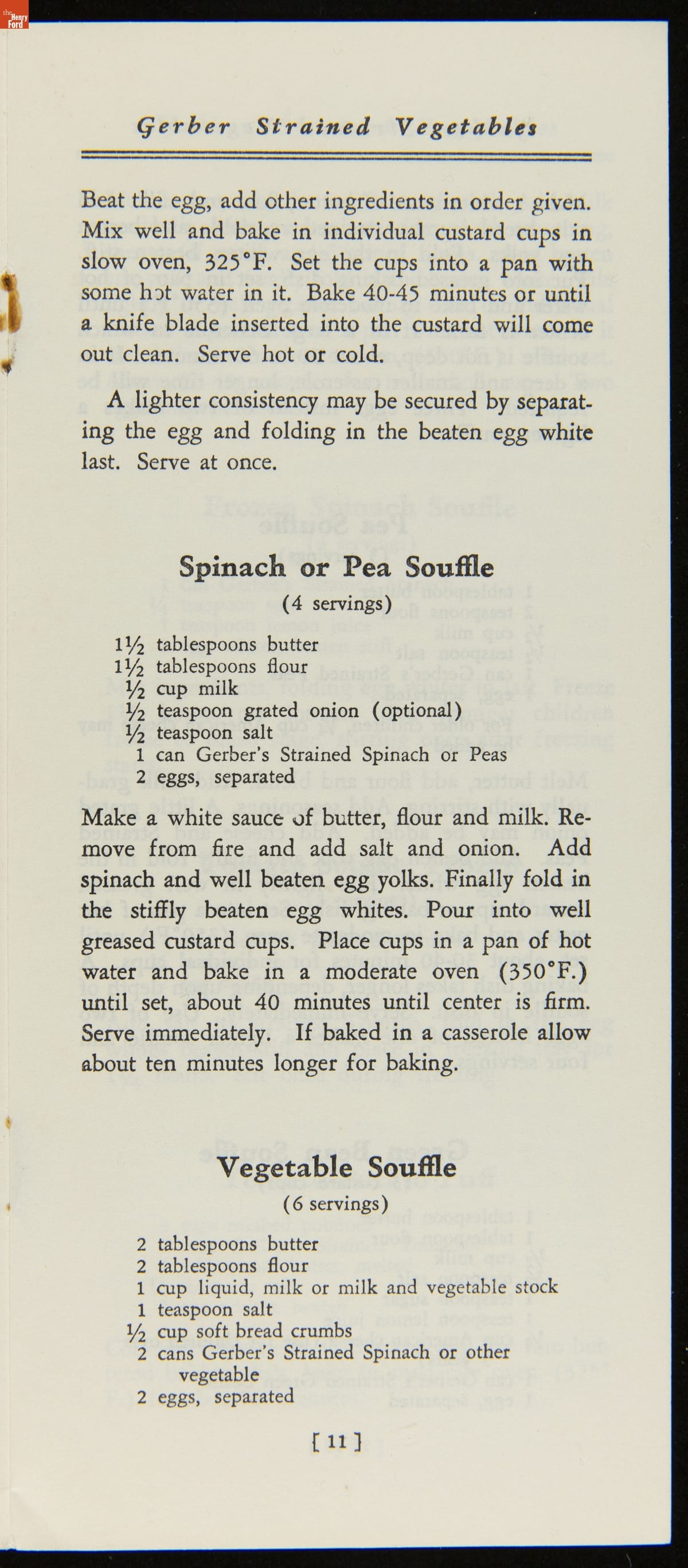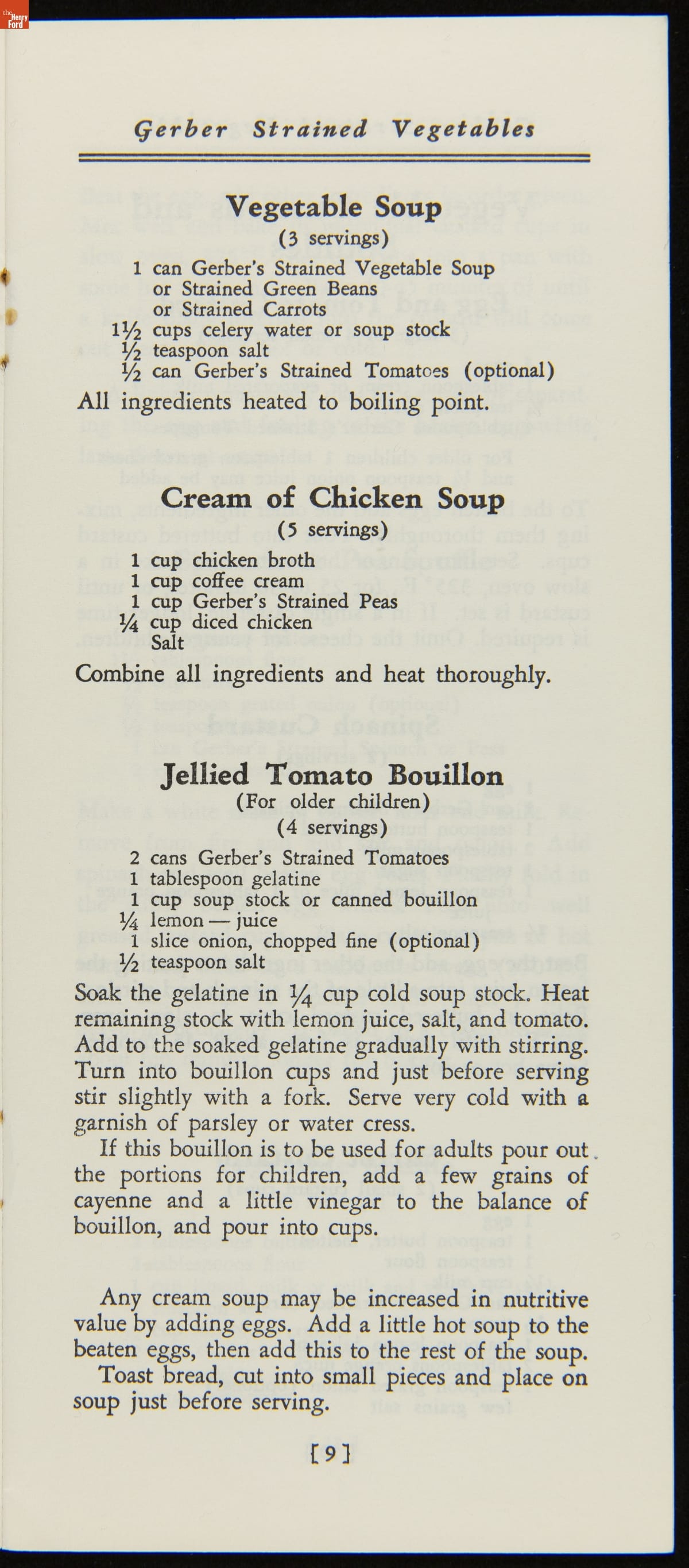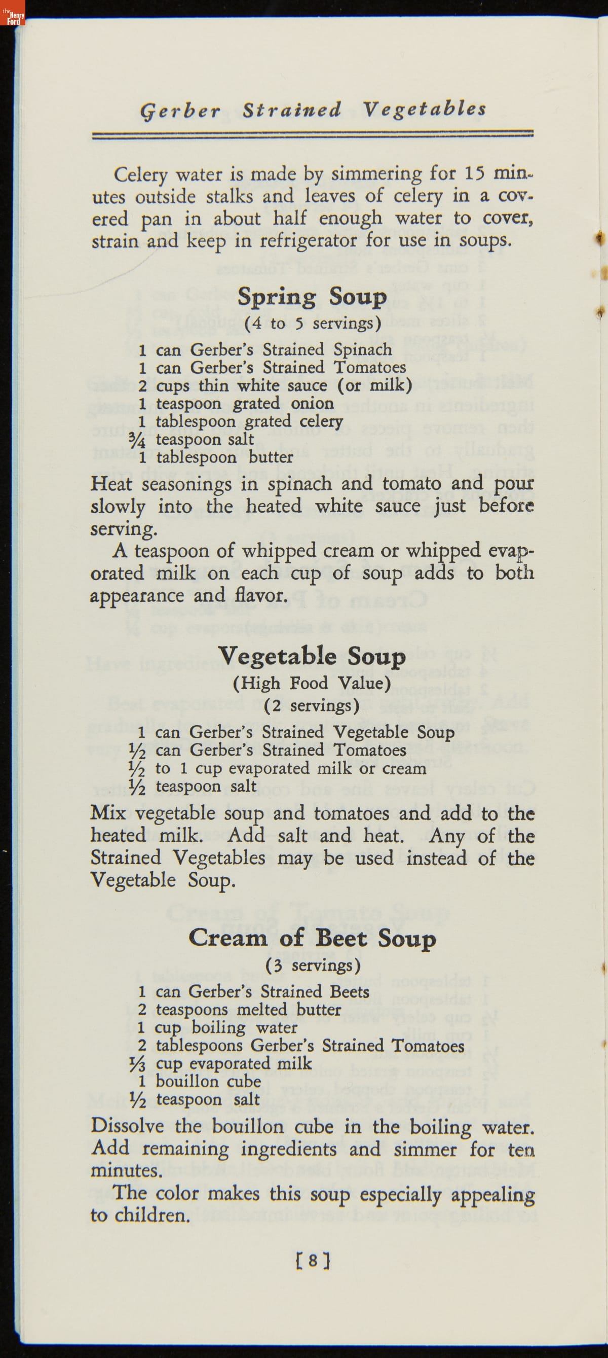 Recipe Booklet, "Gerber Products Company, More Attractive Vegetable Dishes for Pre-School Children and Grown-Ups," circa 1933