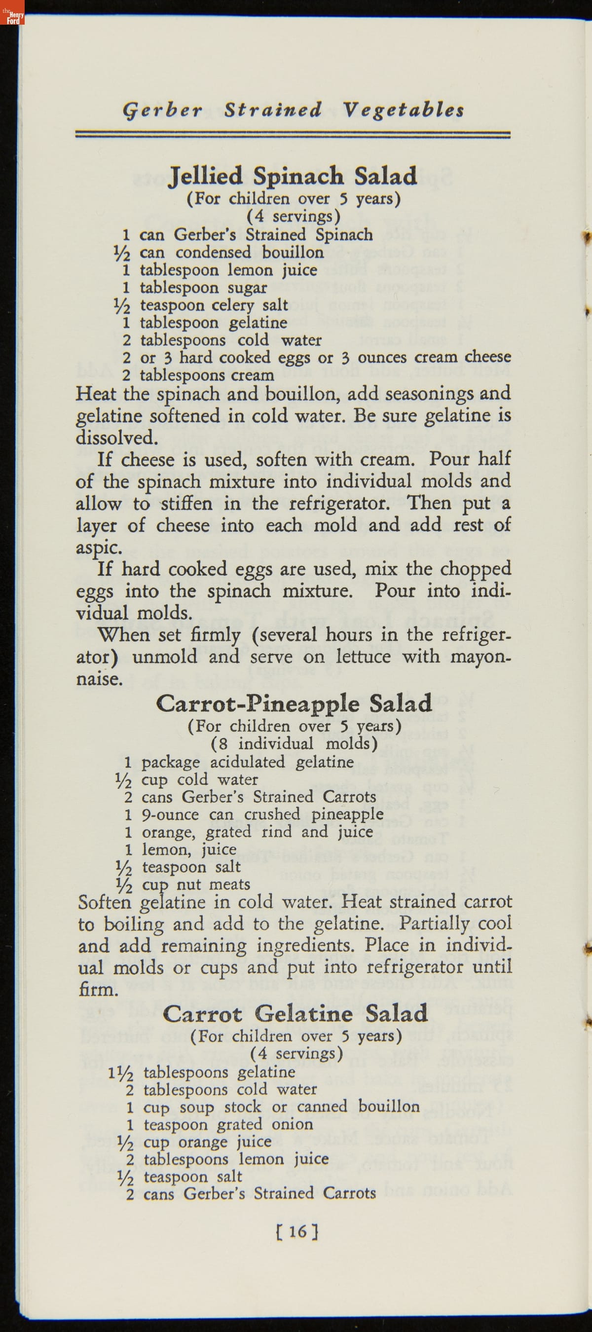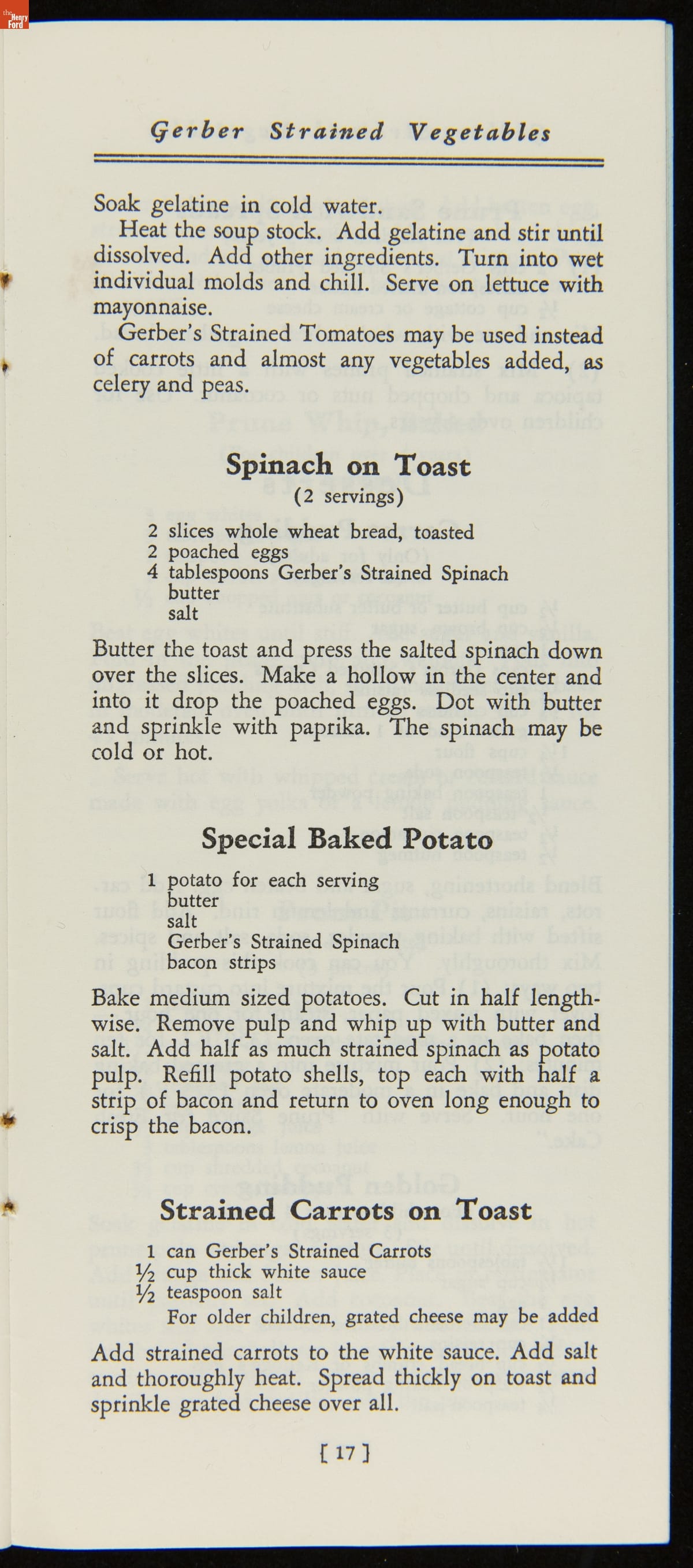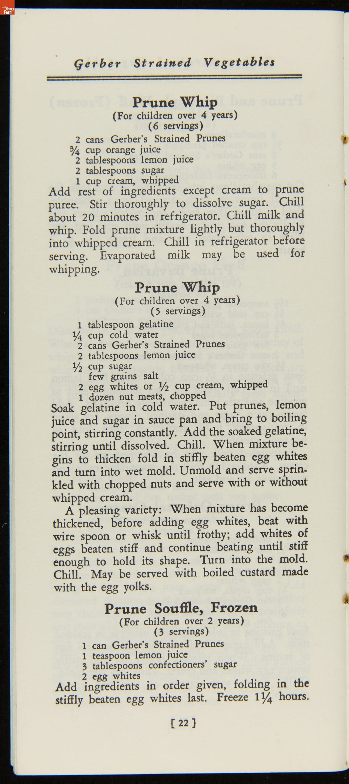 Recipe Booklet, "Gerber Products Company, More Attractive Vegetable Dishes for Pre-School Children and Grown-Ups," circa 1933