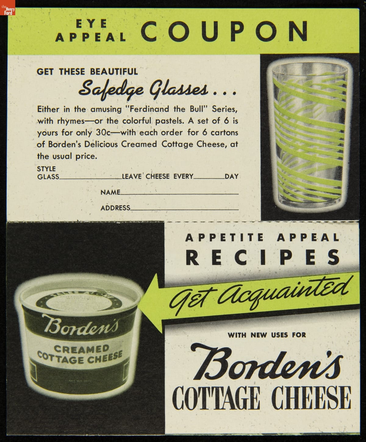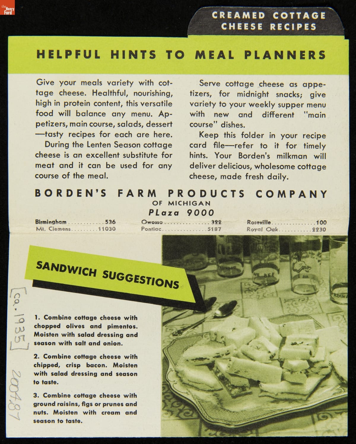 Recipe Card, "Borden's Suggests Eye Appeal and Appetite Appeal for your Lenten Table," circa 1935