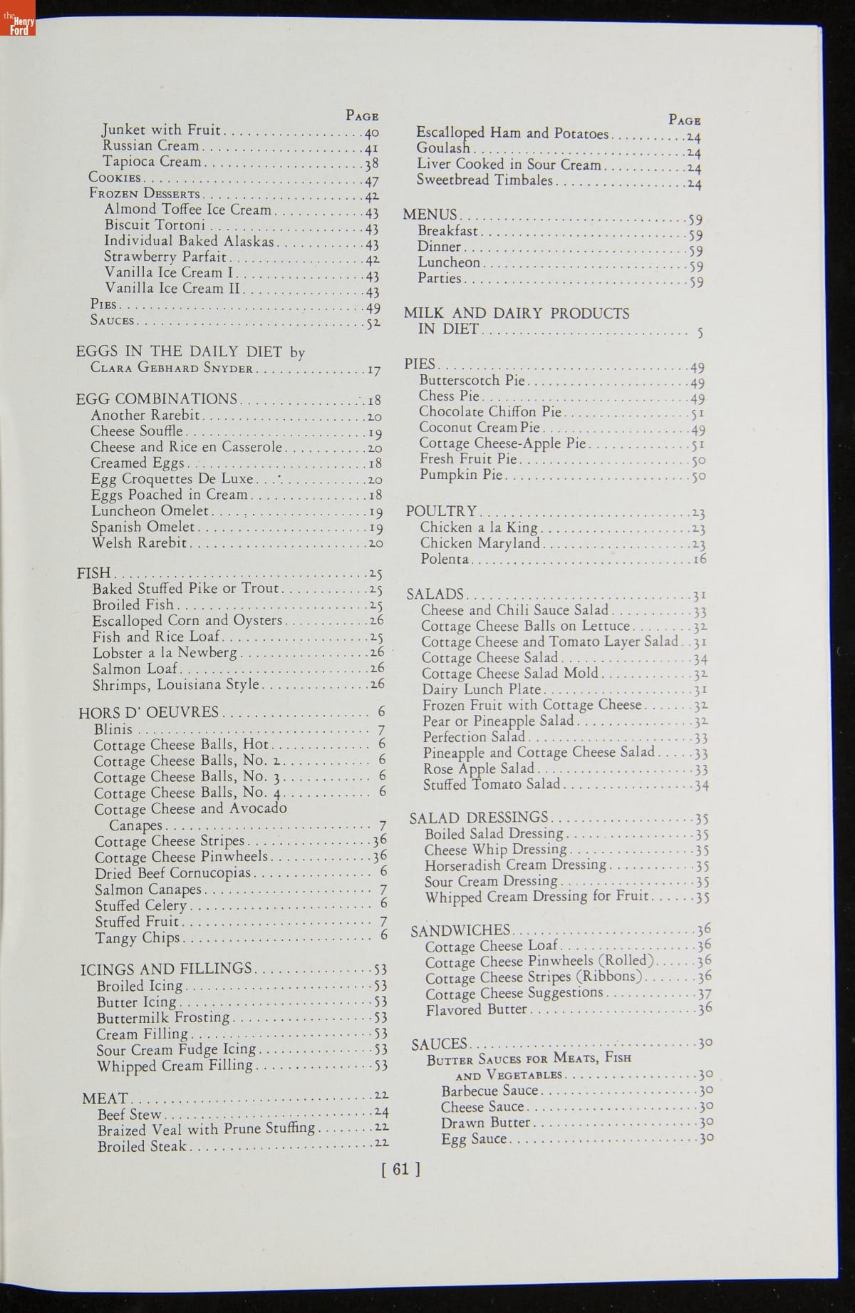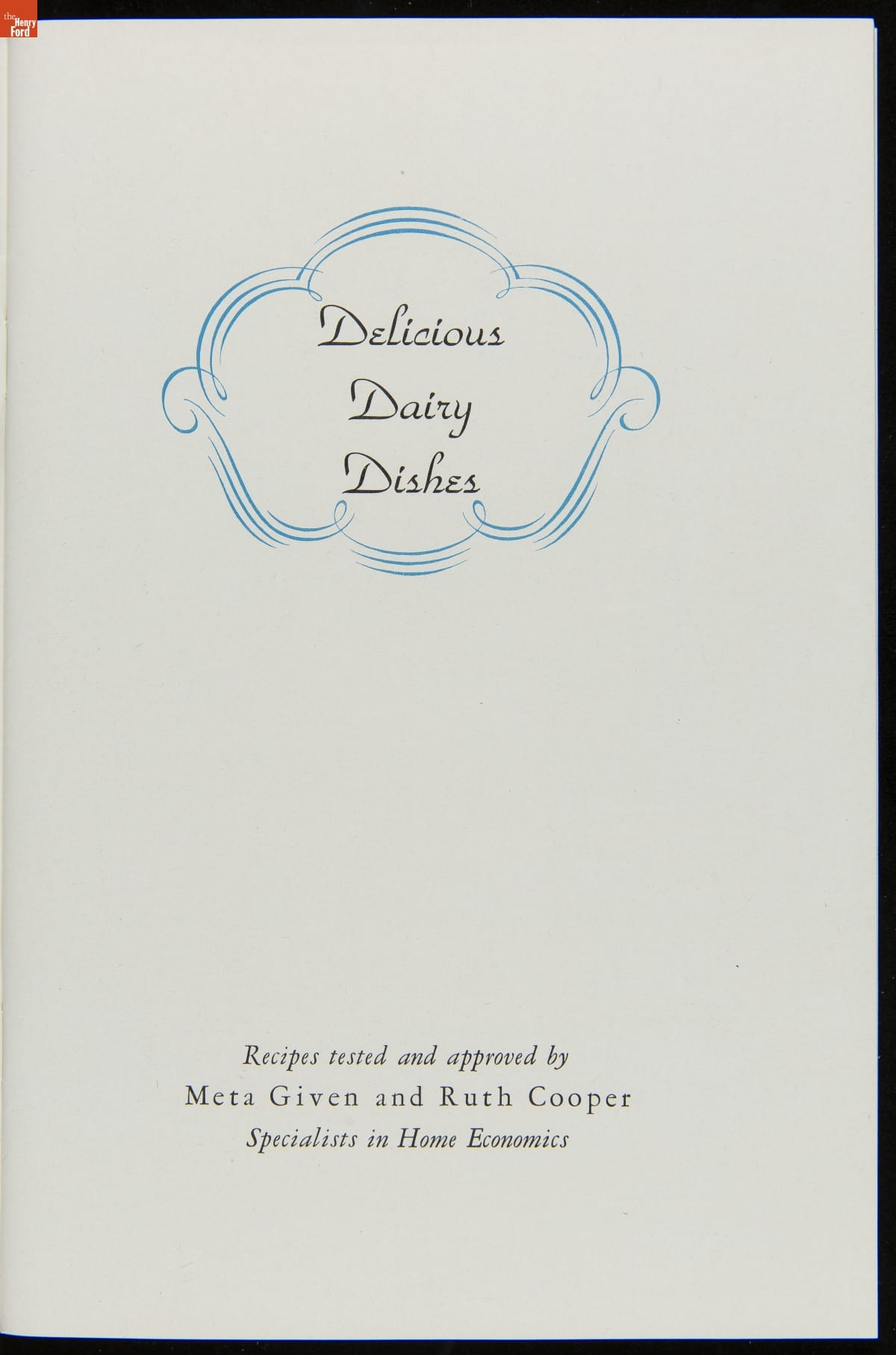Recipe Booklet, "Borden's Farm Products Company of Michigan, Delicious Dairy Dishes: Tested Recipes... Tempting Menus," 1935