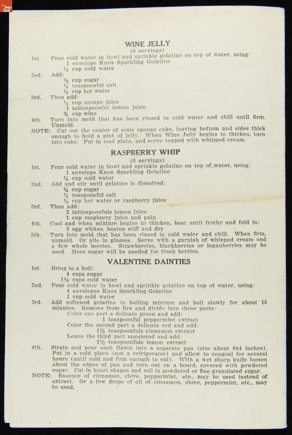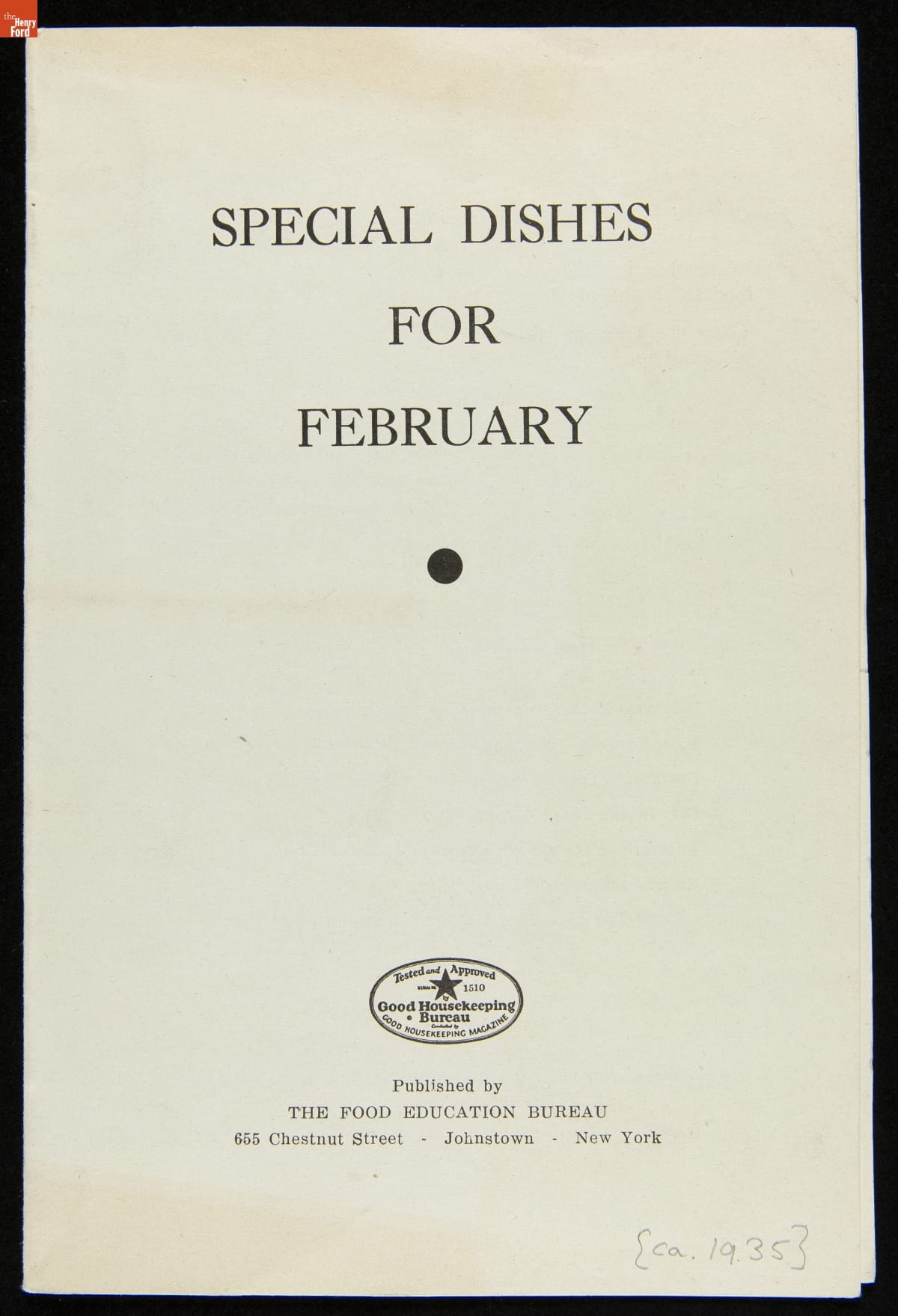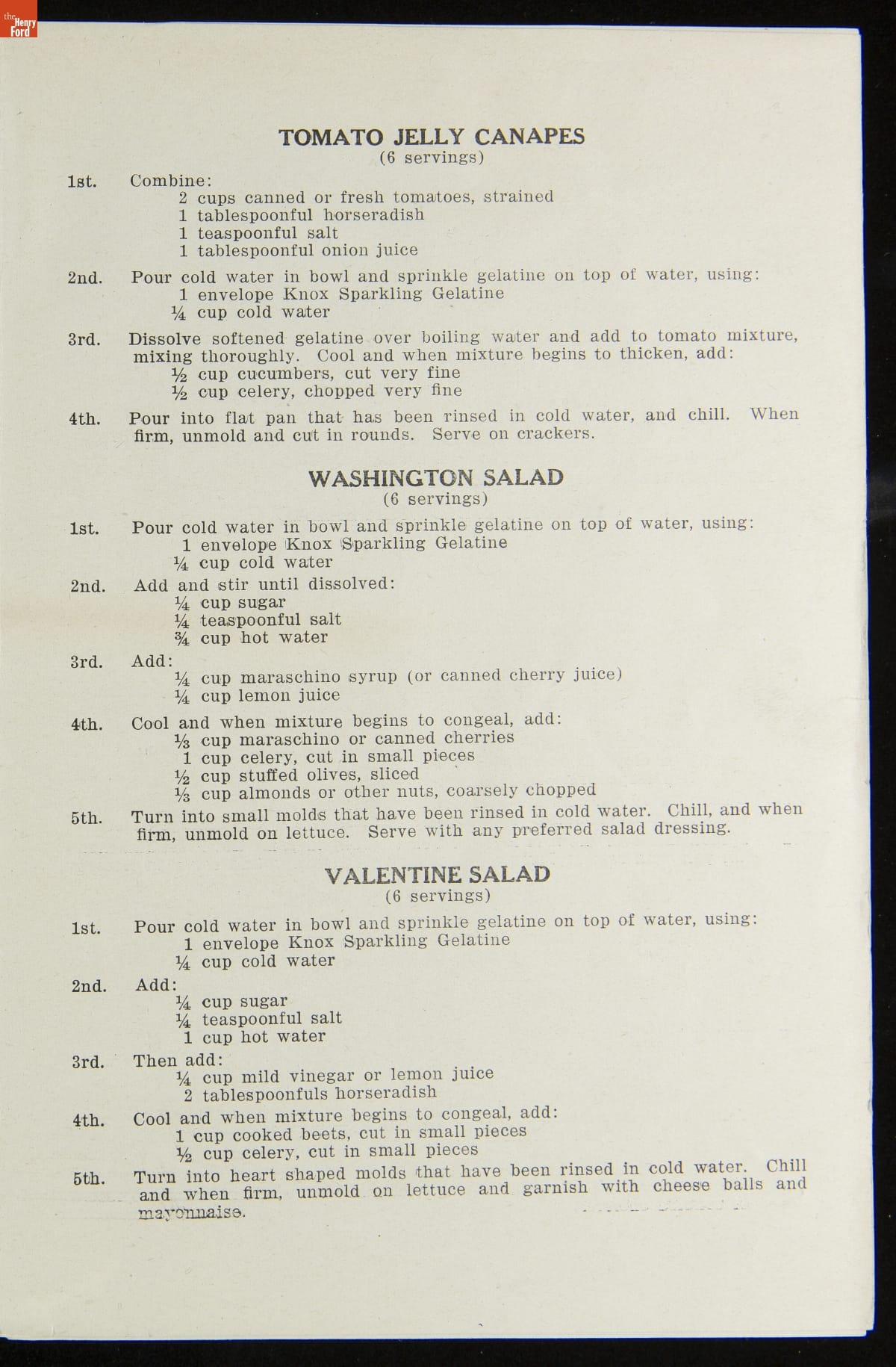 Recipe Booklet, "Knox Gelatine Co. Special Dishes for February," circa 1935